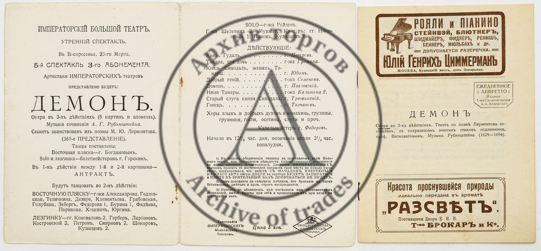 Программа и либретто спектакля Императорского Большого театра «Демон»