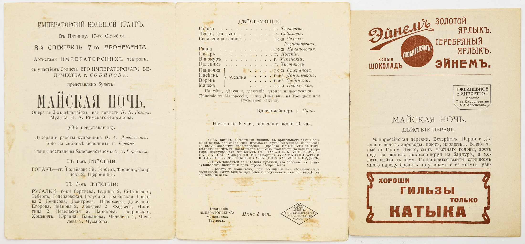 Программа и либретто спектакля Императорского Большого театра «Майская ночь»