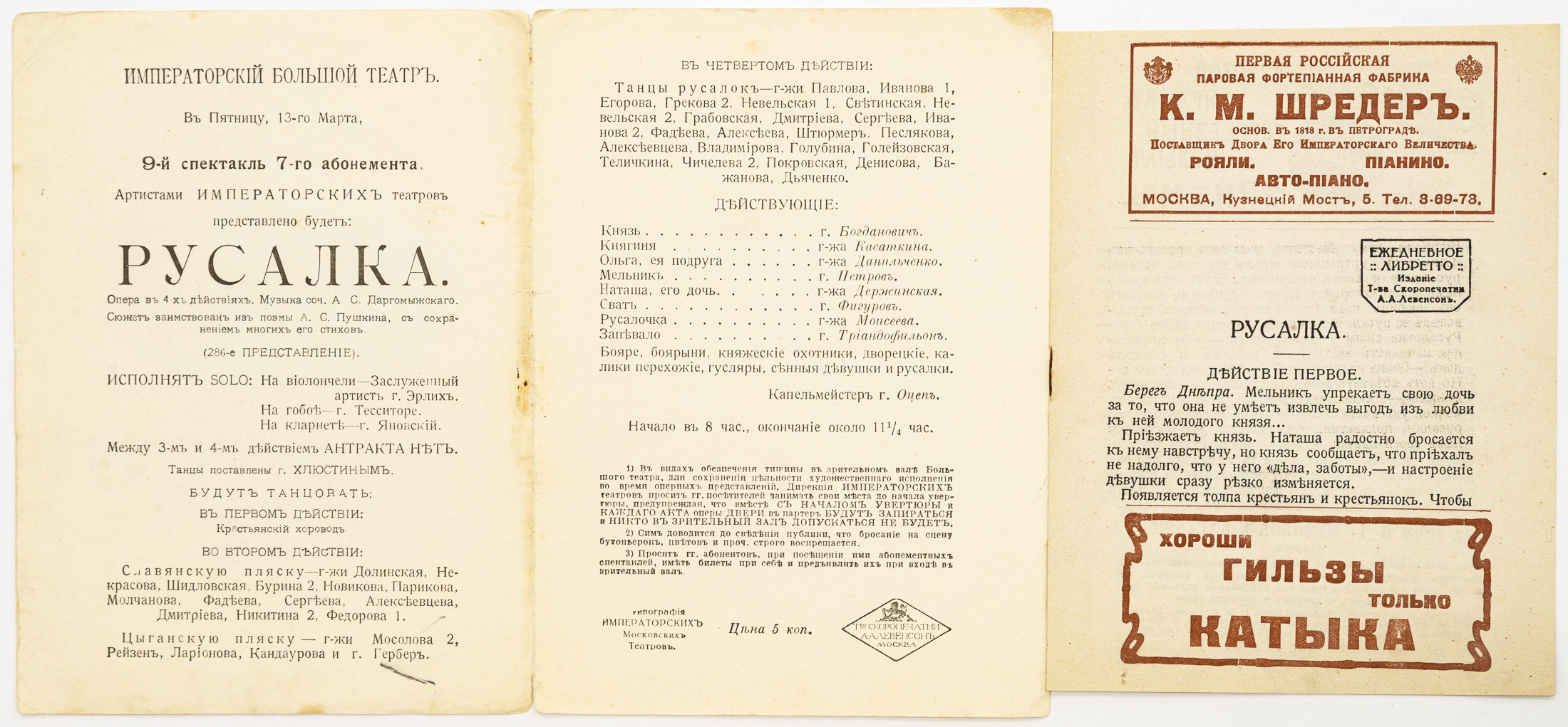 Программа и либретто спектакля Императорского Большого театра «Русалка»
