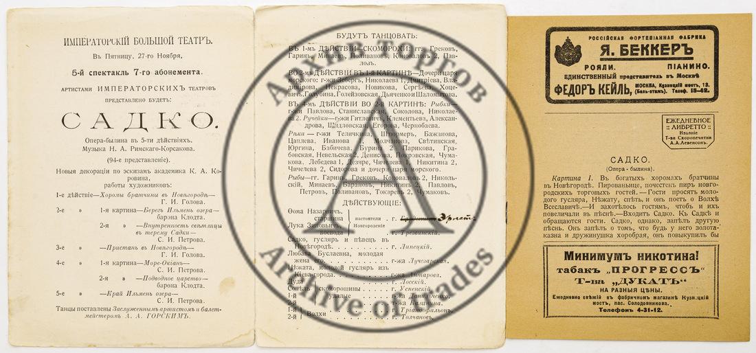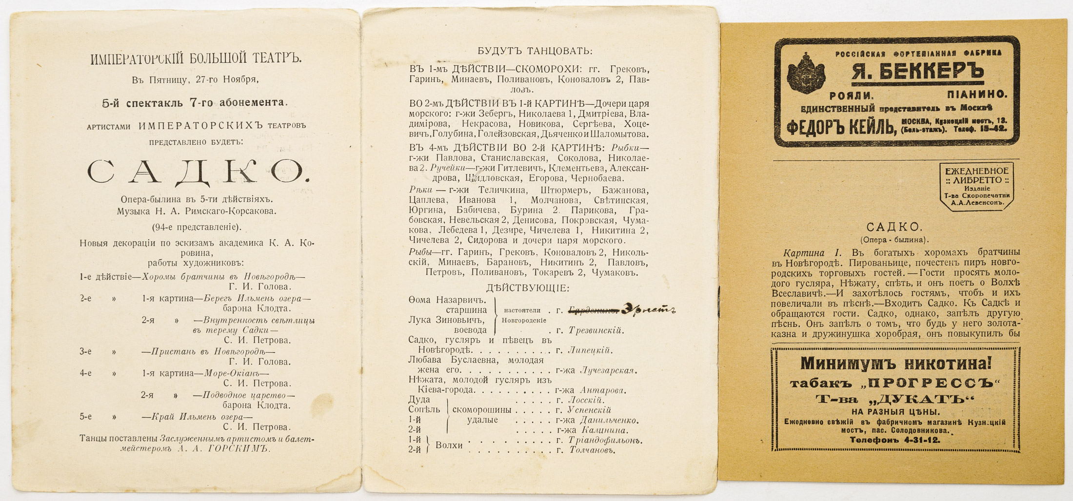 Программа и либретто спектакля Императорского Большого театра «Садко»