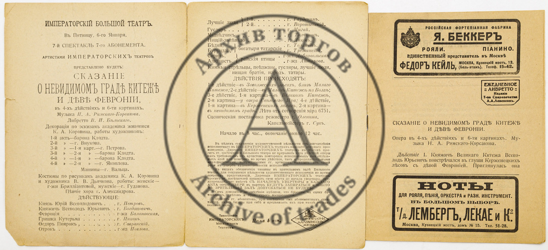Программа и либретто спектакля Императорского Большого театра «Сказание о невидимом граде Китеже и деве Февронии»