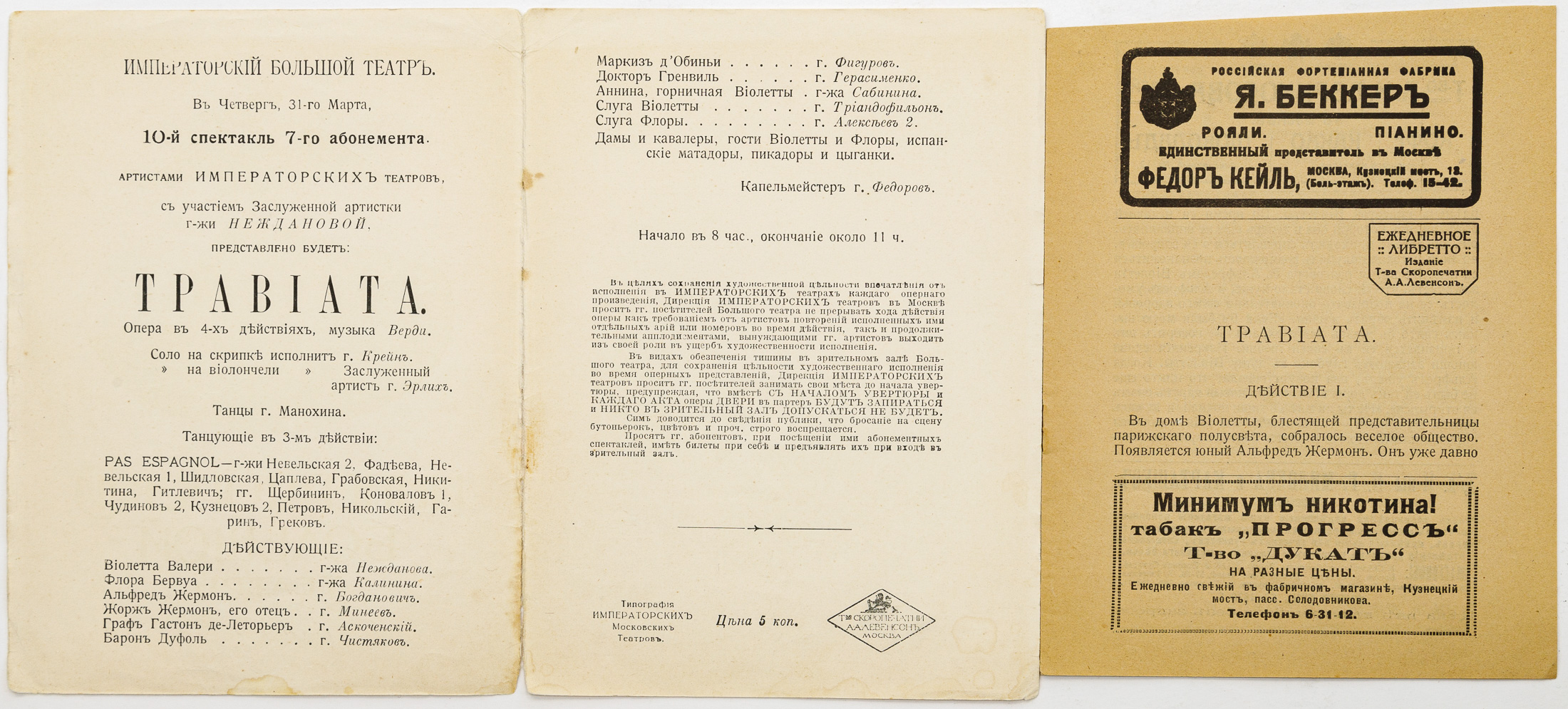 Программа и либретто спектакля Императорского Большого театра «Травиата»
