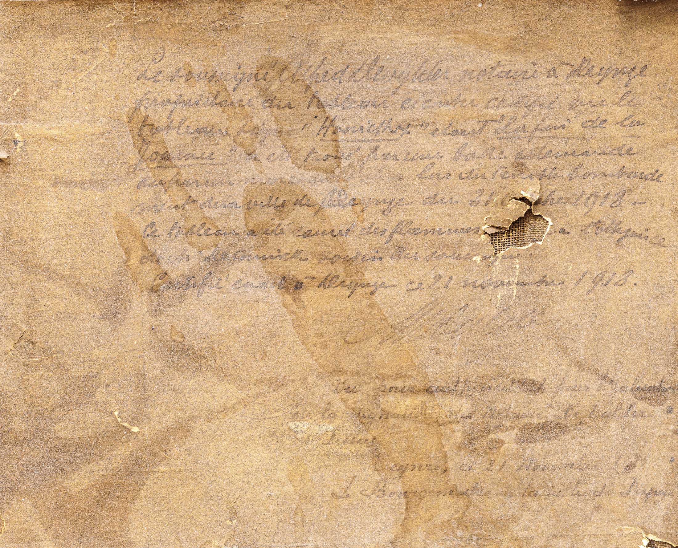Западная Европа, 1918 г (?). Холст (дублированный), масло. 90 Х 124 см. Неразборчивая подпись справа внизу. Работа требует реставрации. Множественные осыпи и прорывы