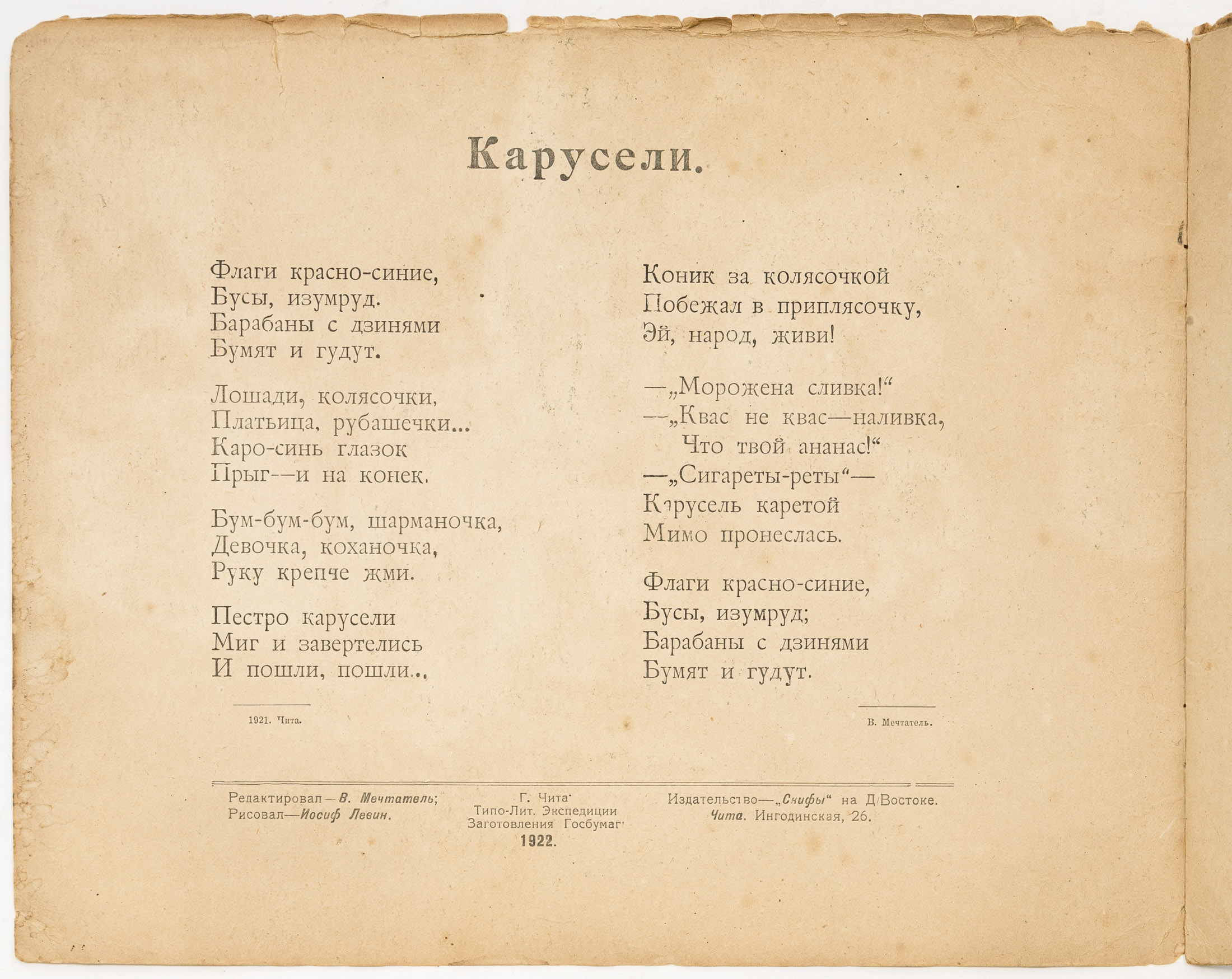 [Редкость!!] Карусели: [Стихи для детей с рис.] / Кн. ред. В. Мечтателем; Рис. исполнены И. Левиным