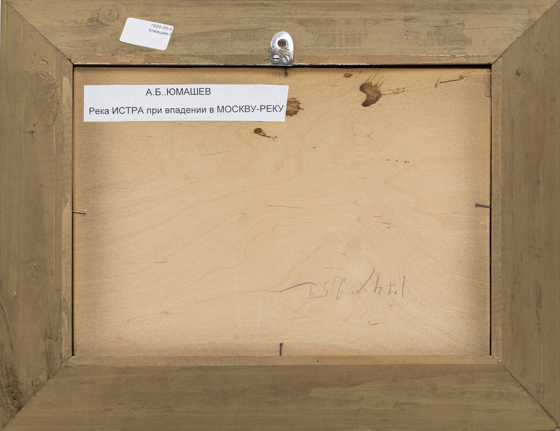 Юмашев Андрей Борисович (1902 г.р.) - Художник-авиатор. Совершил рекордные полёты на высоту с грузом в 5, 10 и 12 т (1936). В 1937 совместно с М. М. Громовым и С. А. Данилиным совершил беспосадочный перелёт Москва — Сев. полюс — Сан-Джасинто (США). Еще в дореволюционный период посещал классы Общества поощрения художников и мечтал стать архитектором и художником. В 1930-е гг. Юмашев познакомился с И.И. Машковым, П.А. Кориным, Н.М. Ромадиным, П.П. Кончаловским, Р.Р. Фальком, А.В. Фонвизиным, позже с В.В. Стерлиговым. Этот круг знакомств определил творческую судьбу Юмашева. С 1946 года А.Б. Юмашев - член МОСХа. Его персональные выставки проходили в в Москве в 1980-х гг. в Алупке в Воронцовском дворце, в музее города Обнинска, в США и в Канаде (Ванкувер). Работы художника находятся в ГТГ, в ГЦТМ им. А.А. Бахрушина, в Смоленском художественном музее, в музее города Обнинска и во многих других собраниях и частных коллекциях.