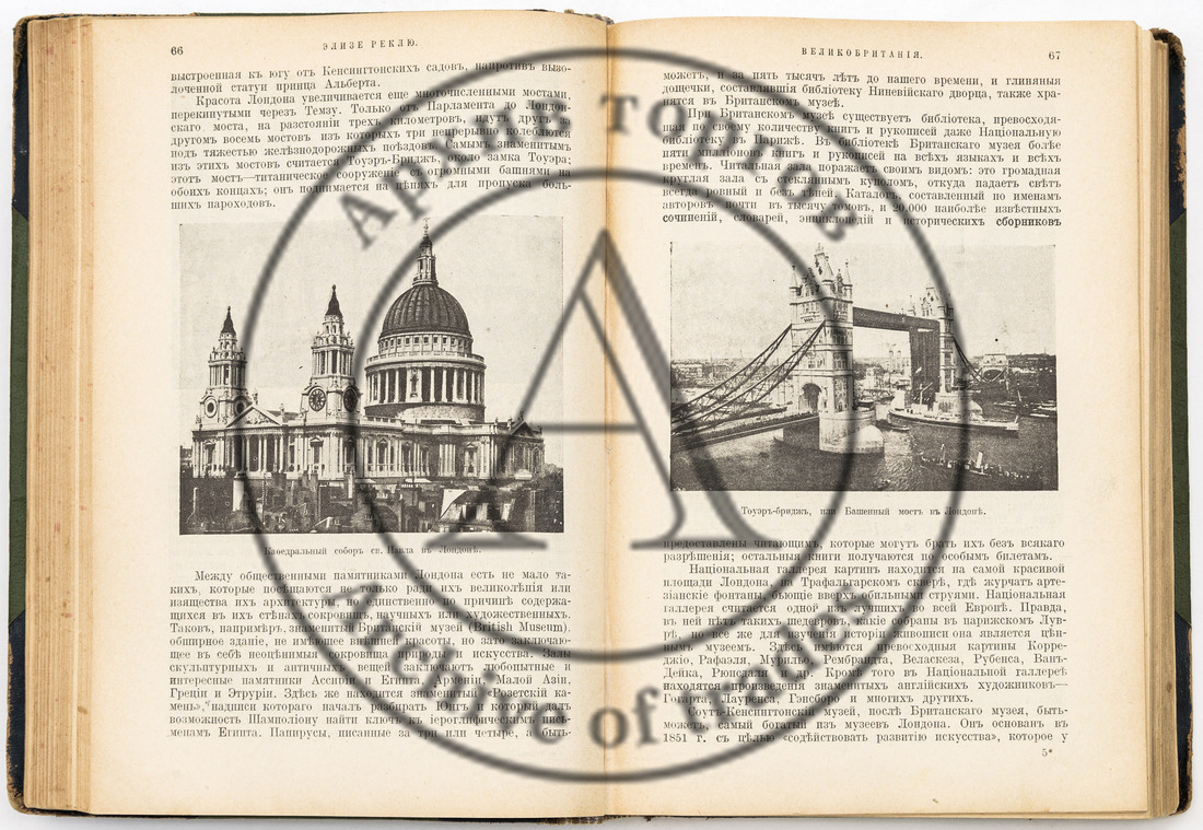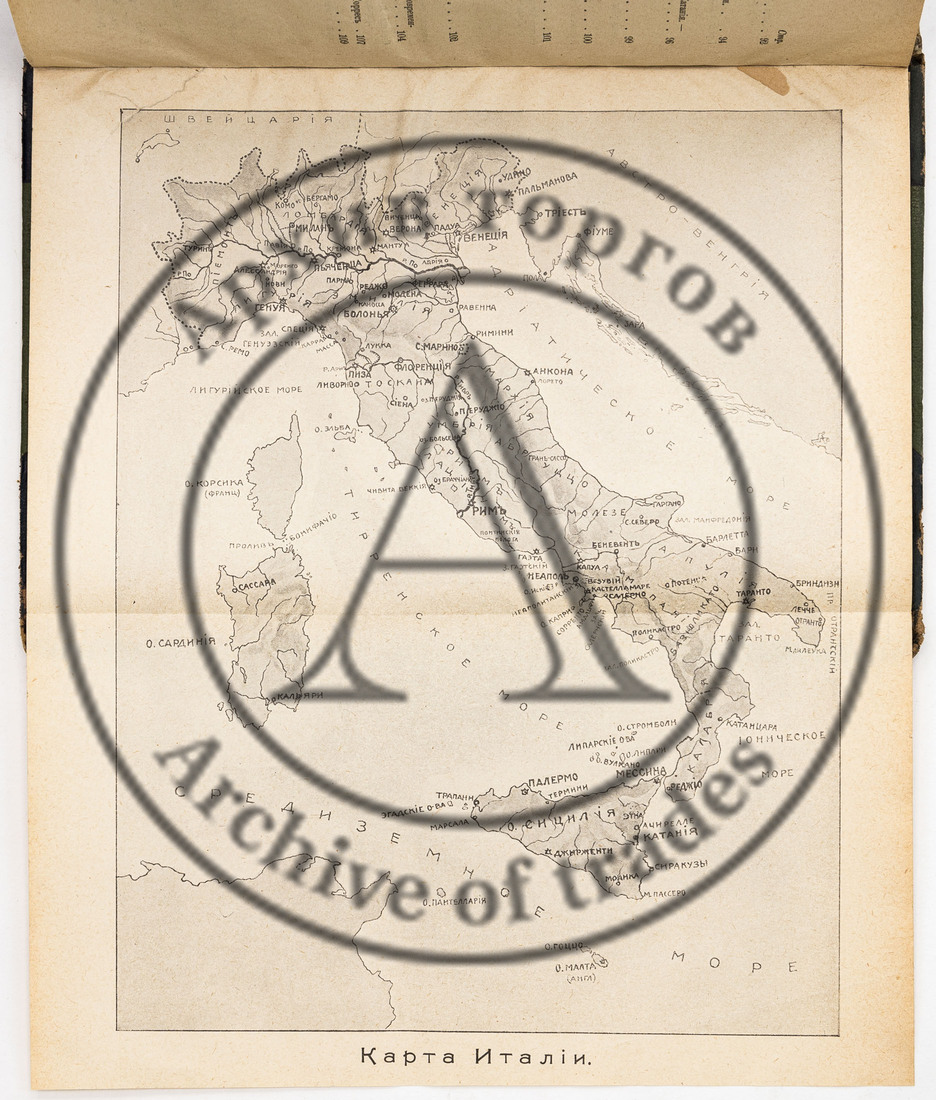 Сохранность: потертости переплета; трещина и утрата фрагментов кожи на корешке; владельческая подпись на первом титульном листе; «Франция» – небольшое прорыв стр. 117/118 (типографский брак); «Австро-Венгрия» – стр. 64 проклеена бумагой; редкие владельческие пометки граф. карандашом.