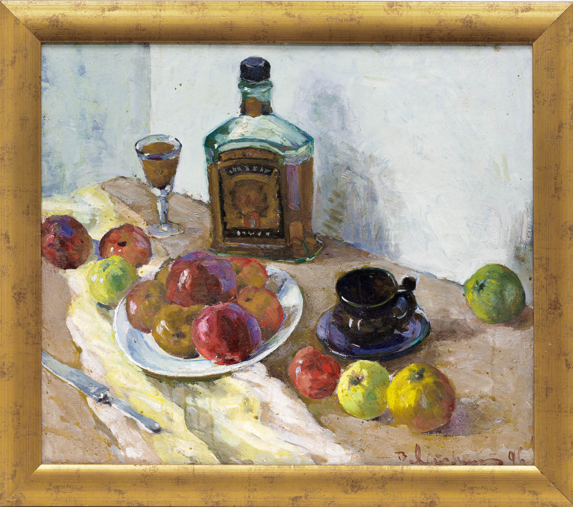 Клейма: 1) «IK» в прямоугольном щитке (серебряного дела мастер Кучкин Илья Григорьев, 1743-92 гг.); 2) «АѲП» в щитке в форме сердца (мастер по качеству Петров Федор, 1759-84 гг.); 3) «В·А» в прямоугольном щитке (Неизвестный пробирный мастер, 1760-94 гг.); 4) герб Москвы «Георгий Победоносец, на коне, поражающий копьём дракона» (обращен вправо, в фигурном щитке) под ним дата «1764» в прямоугольном щитке.