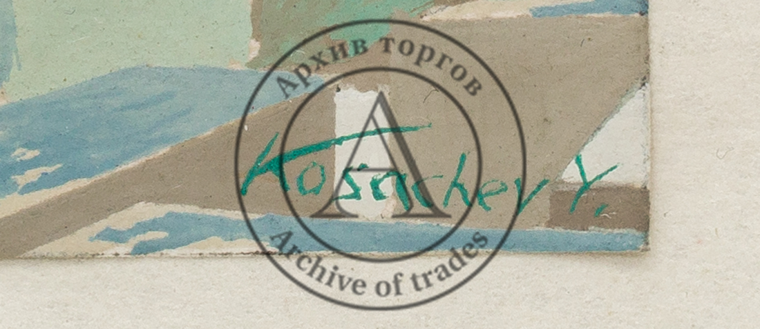Втор. пол. ХХ века. Бумага, гуашь. 15 Х 17,5 см (в свету). Подпись слева под изображением. Оформлен в раму, паспарту, под стеклом.