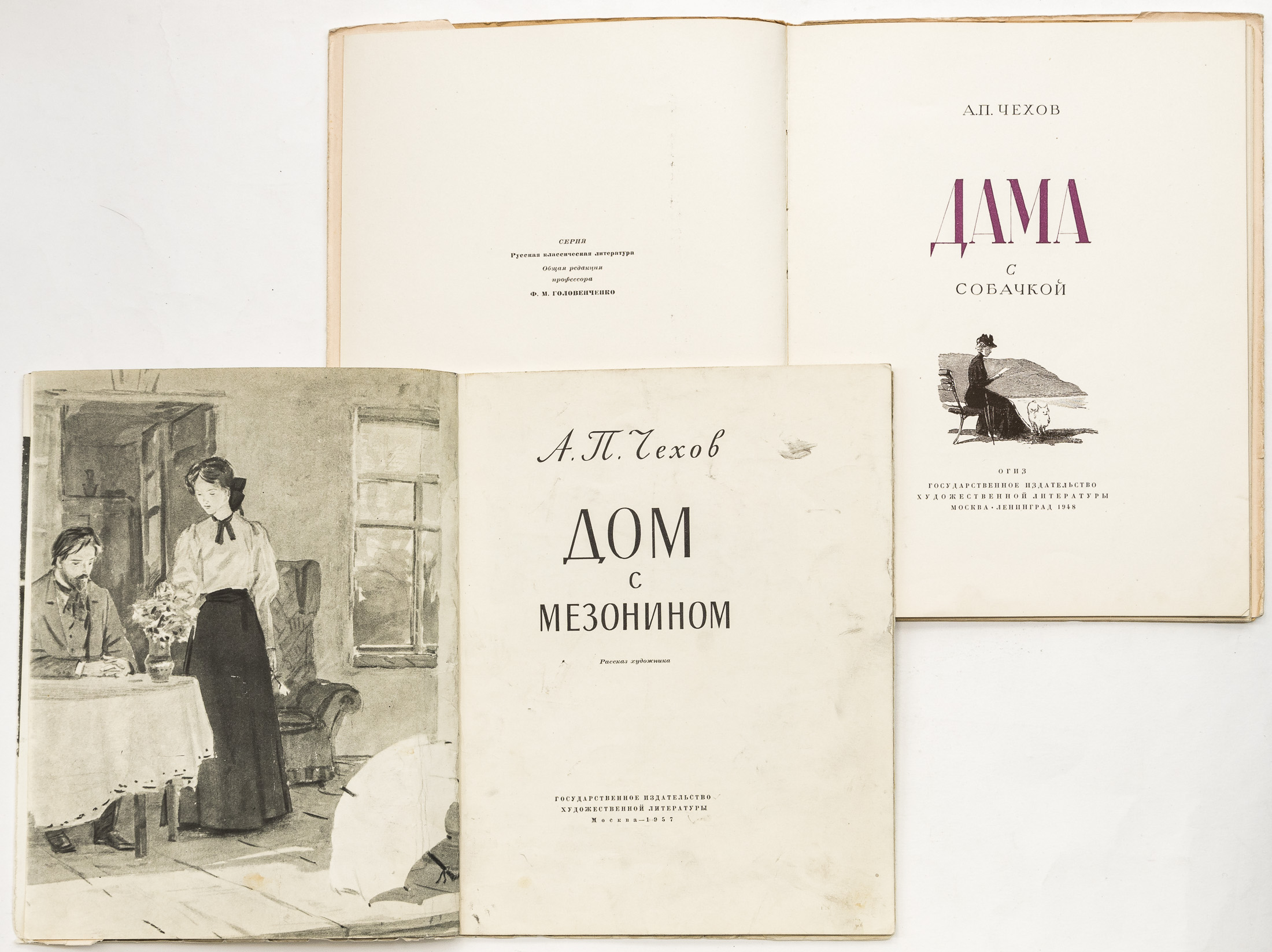 1. Чехов А.П. Дама с собачкой / Ил.: Кукрыниксы — Москва; Ленинград: Гослитиздат, 1948 — 44 с.: ил.; 29,5х22,5 см
