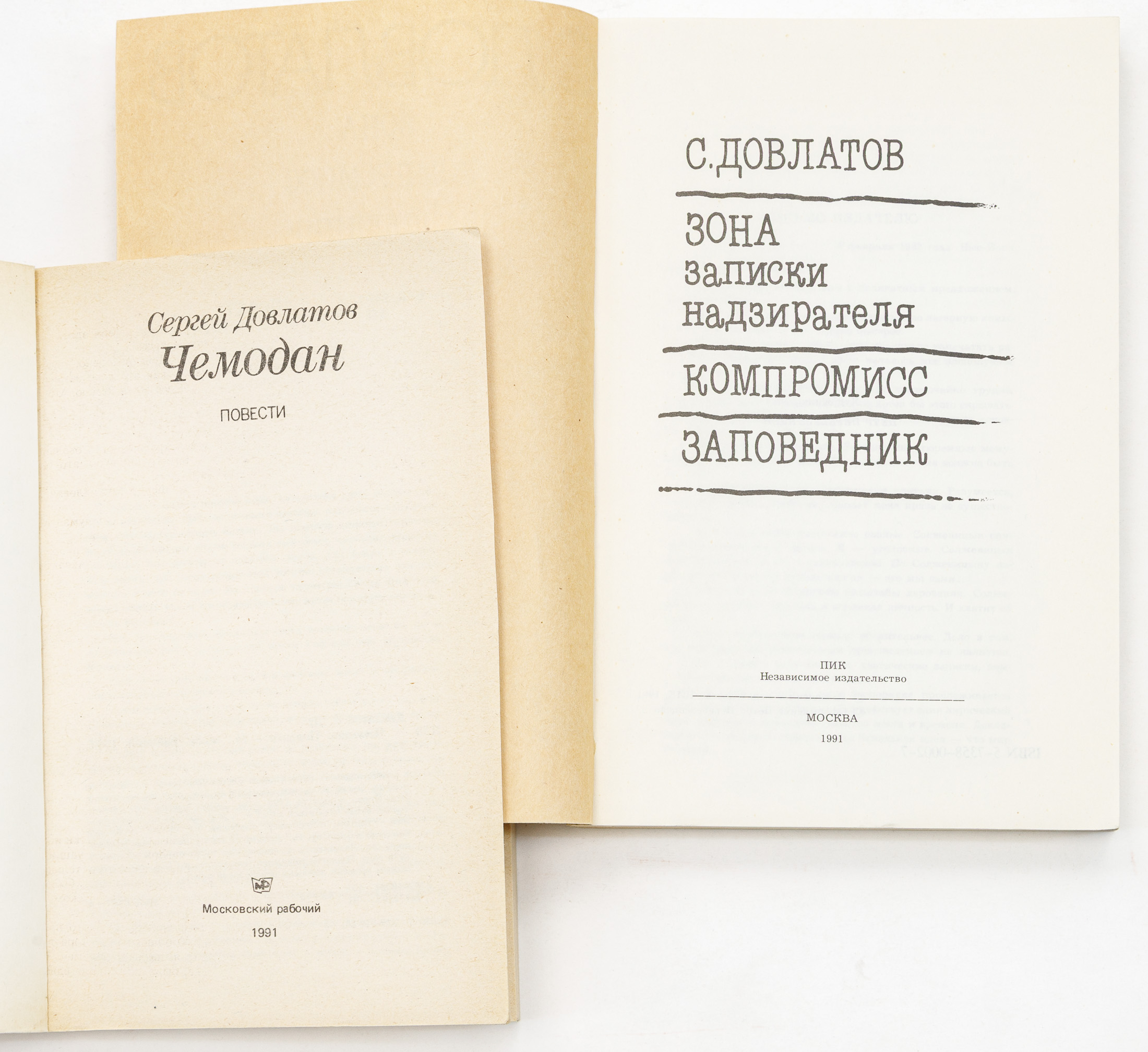 2. Довлатов С.Д. Зона Записки надзирателя; Компромисс; Заповедник — Москва: ПИК, 1991 — 352 с.: ил.; 21х14 см
