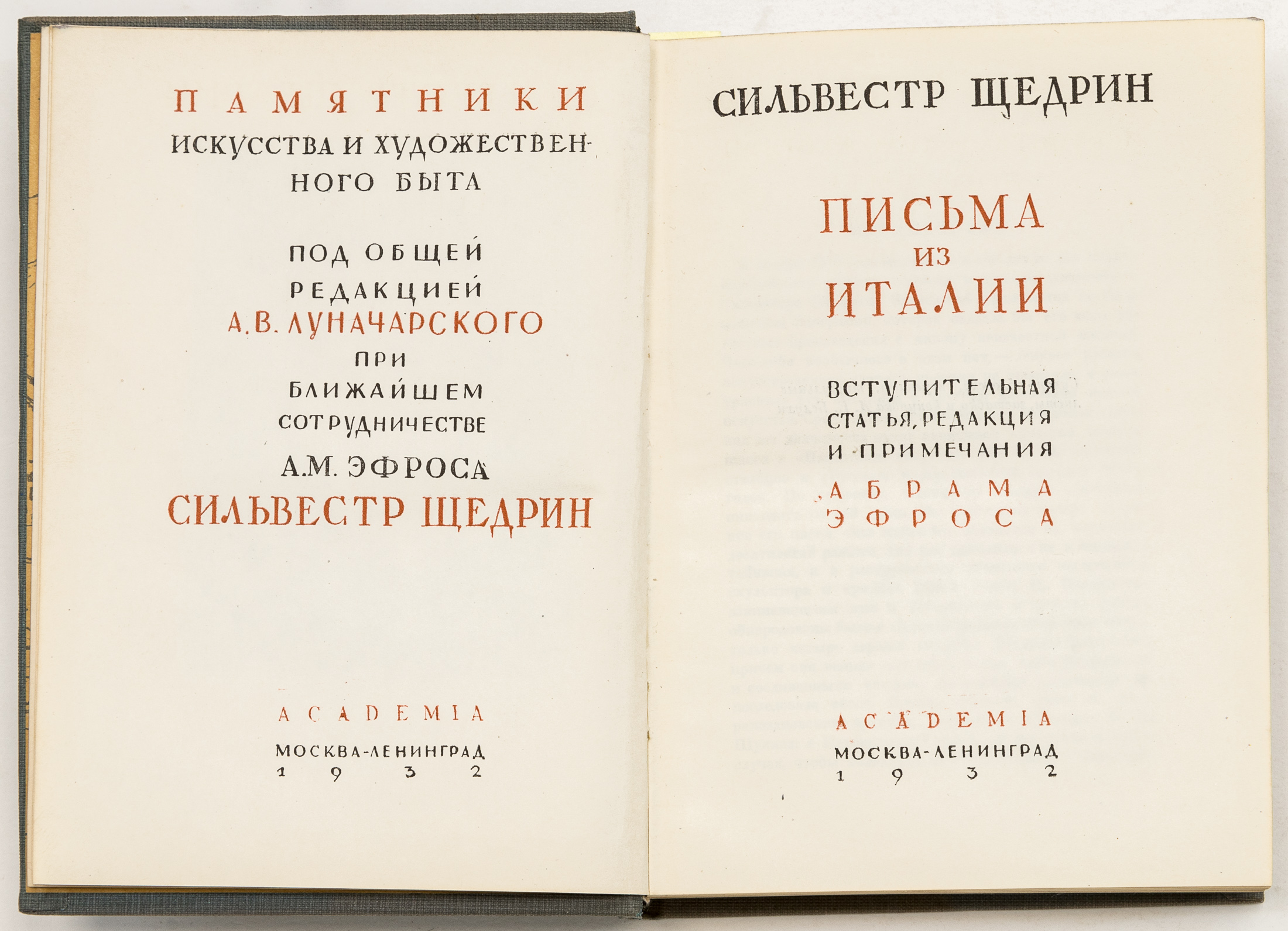 Щедрин С.Ф. Письма из Италии / вступ. статья, ред. и прим. А. Эфроса