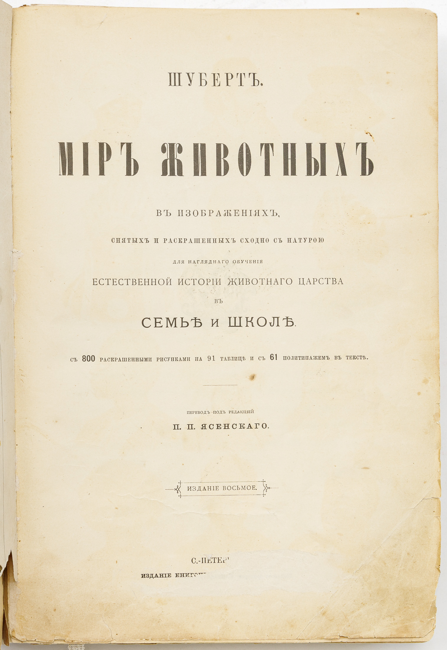 Шуберт Г.Г. Мир животных в изображениях, снятых и раскрашенных сходно с натурой для наглядного обучения естественной истории животного царства в семье и школе — 8-е изд.