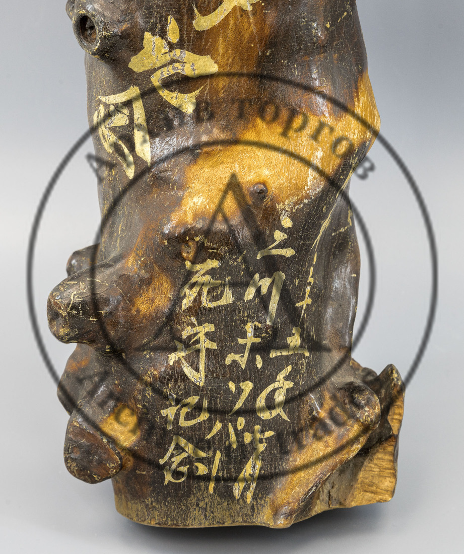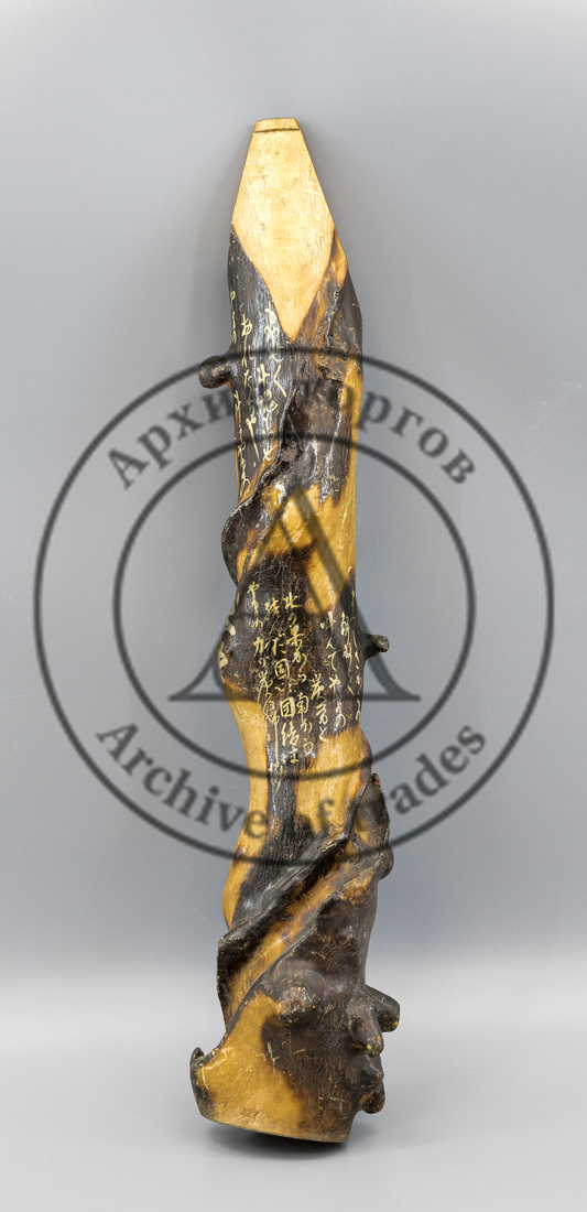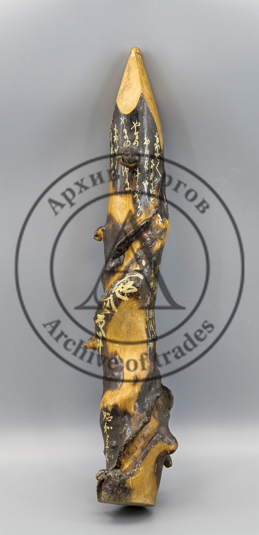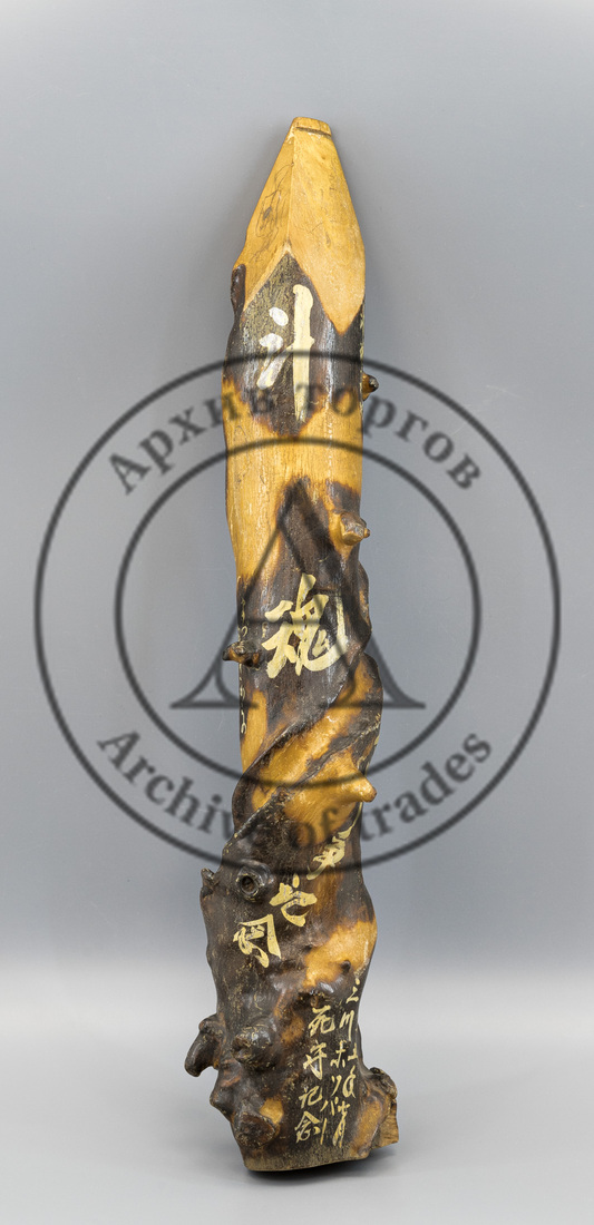 Скульптура из необработанного дерева в виде мундштука с иероглифами