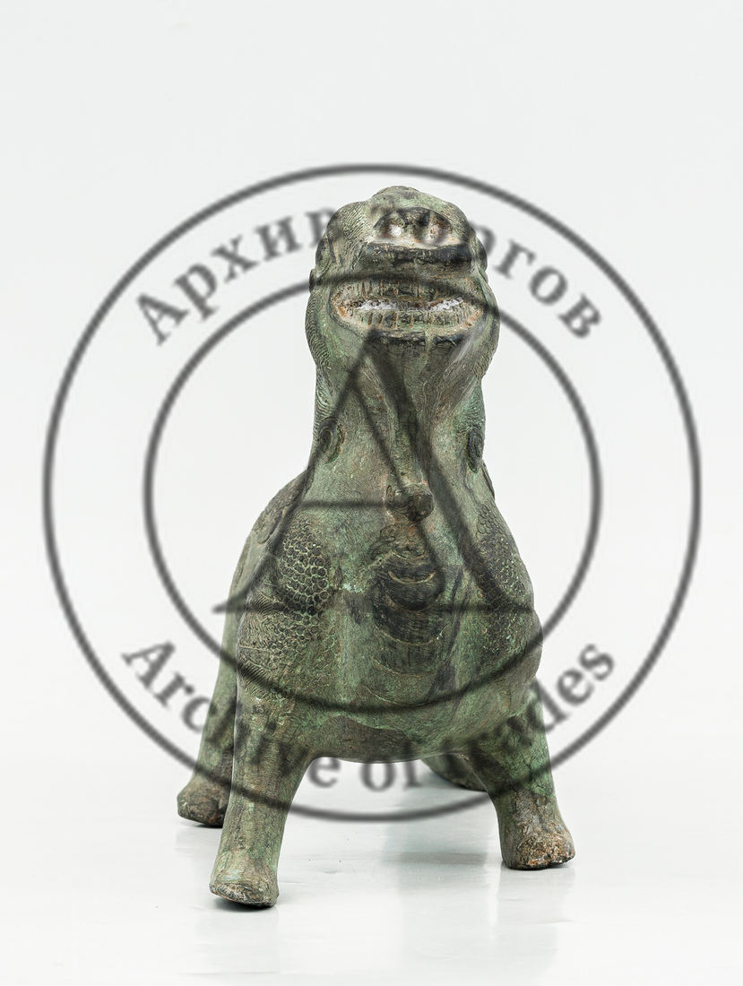 Сохранность: утрата фрагмента лапы, окислы, песок внутри, следы бытования.