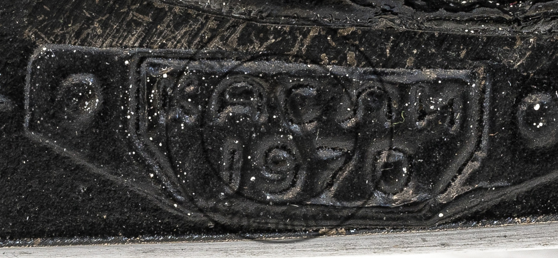 Клейма: 1) «КАСЛИ 1970» в фигурном щитке; 2) «4 ОТК» оранжевым; 3) «8» в массе.