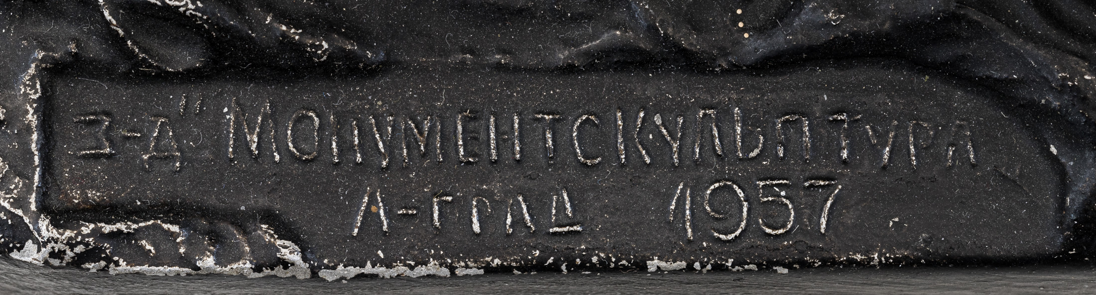 На поземе авторская подпись «Г. Ветютнев» и клеймо завода «З-д Монументскульптура // Л-град 1957».