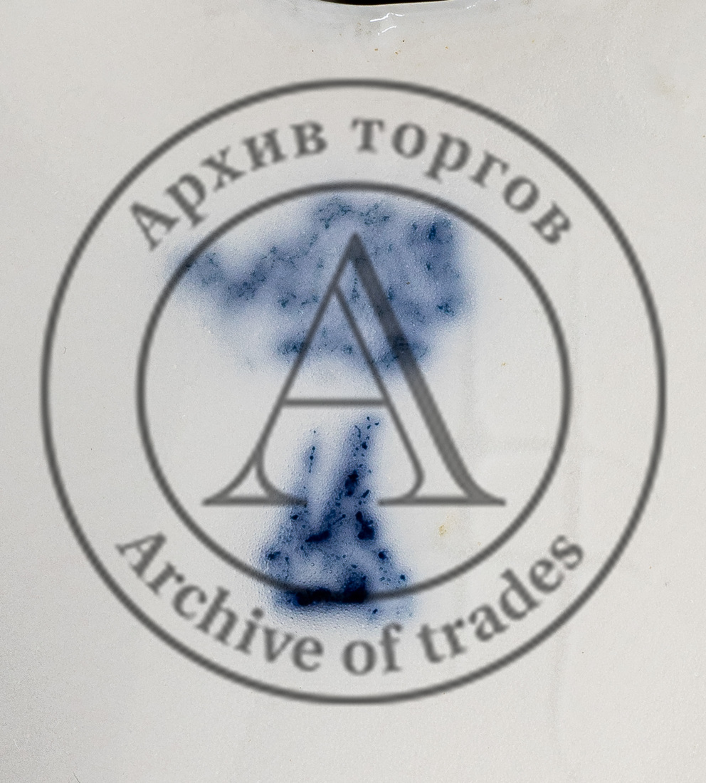 Марки: 1-2) «ЛФЗ», ниже неразборчивая марка (синим подглазурно); 3) «1 сорт» (печать синим); 4) «157» (коричневым от руки); 5) «решётка» в тесте.