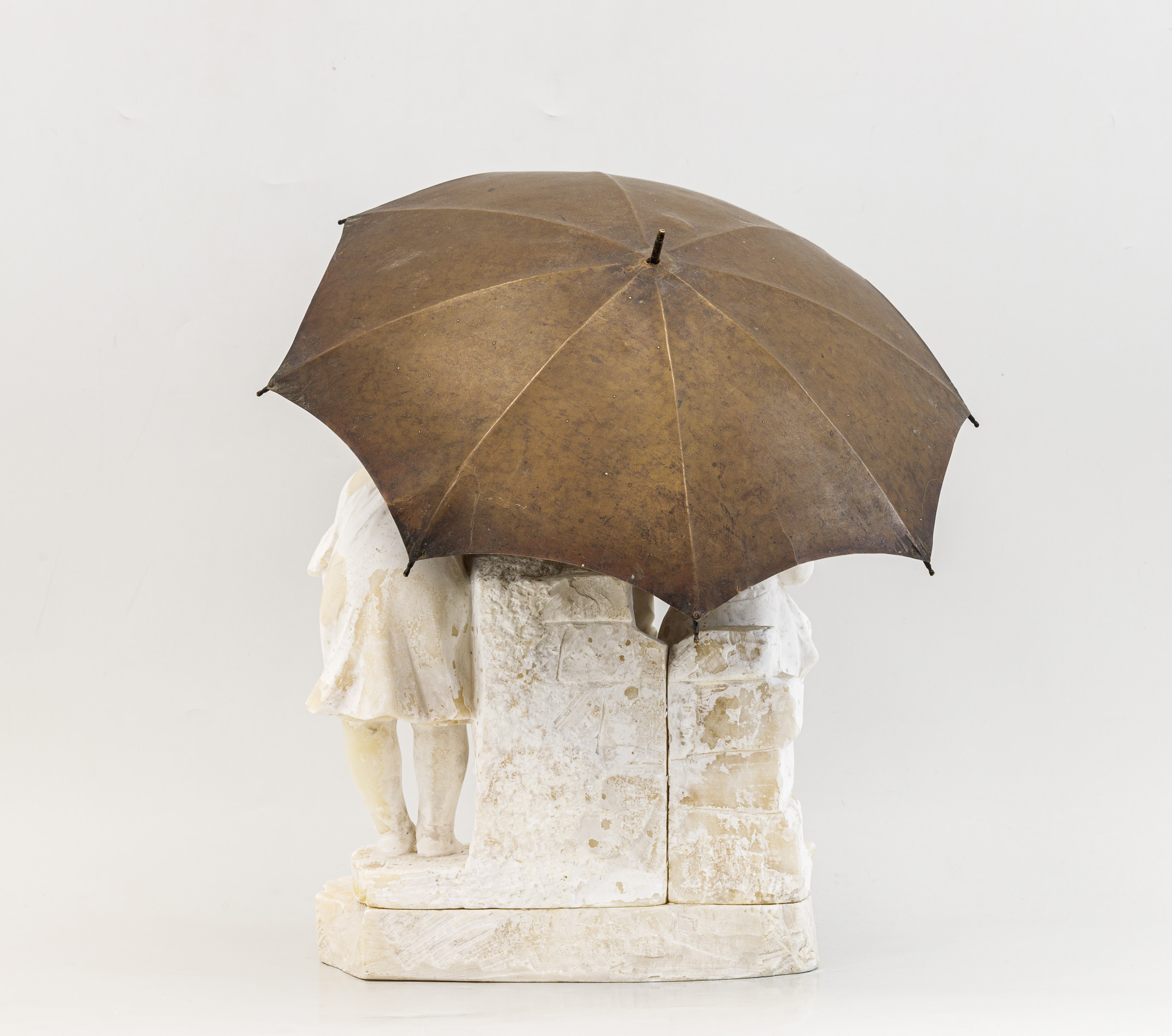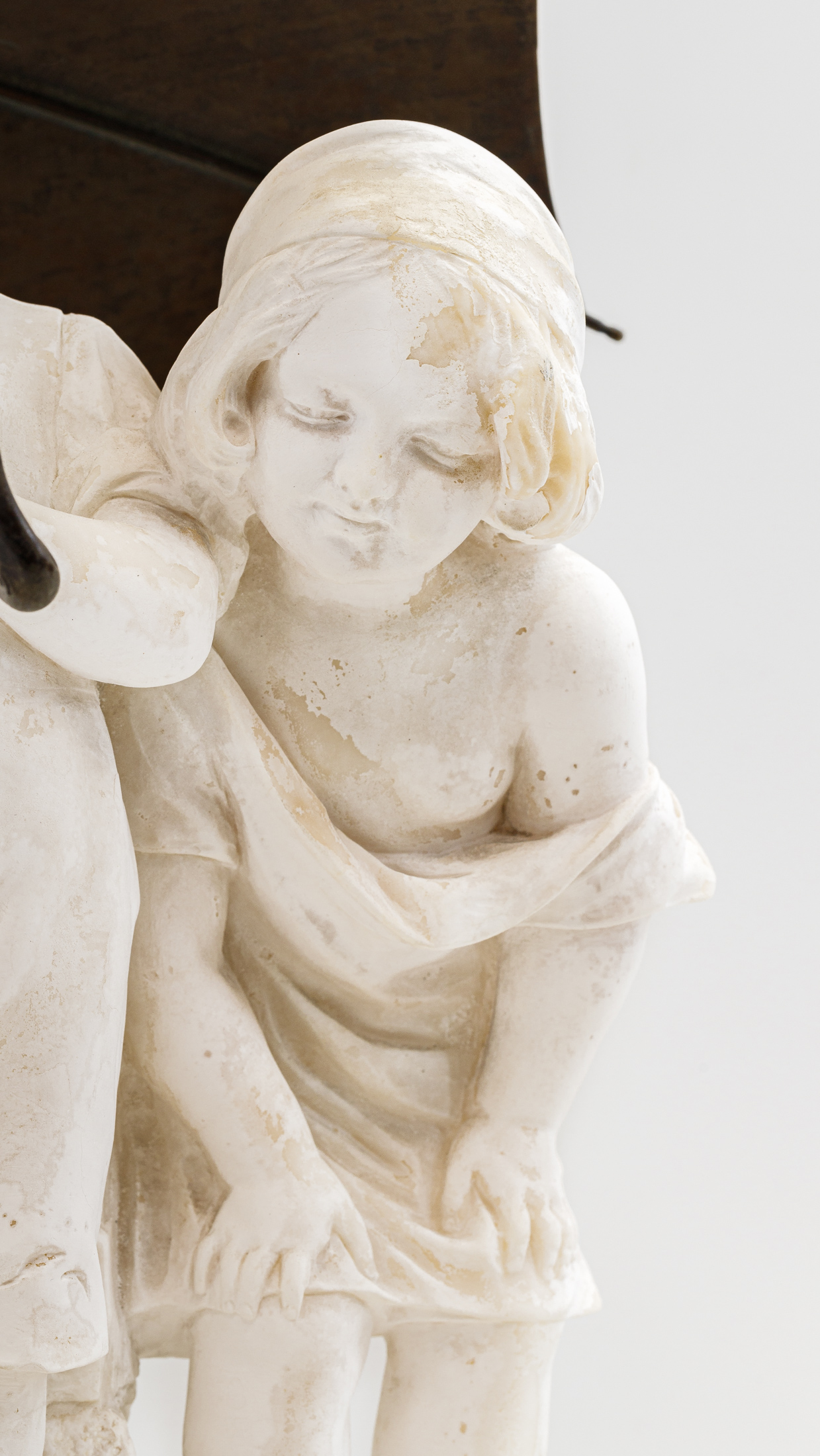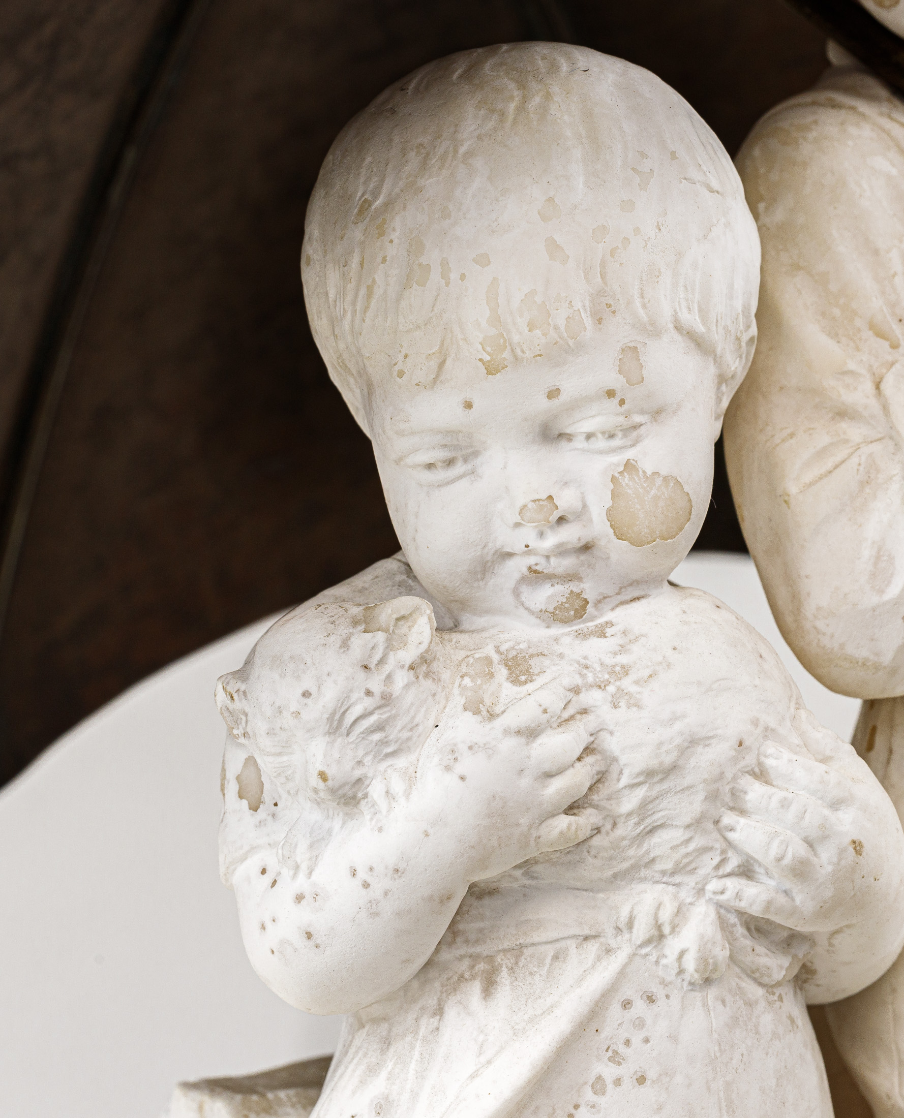Сохранность: потертости; небольшие сколы; окислы; склейка на шее у мальчика, держащего зонт; надпись на поземе «D.Asti».