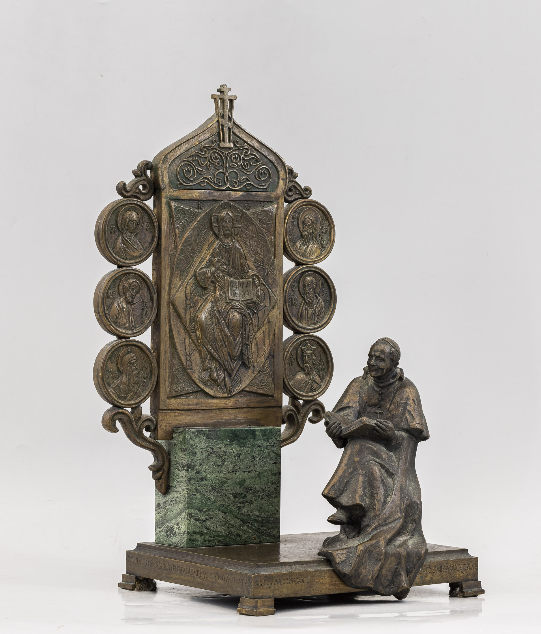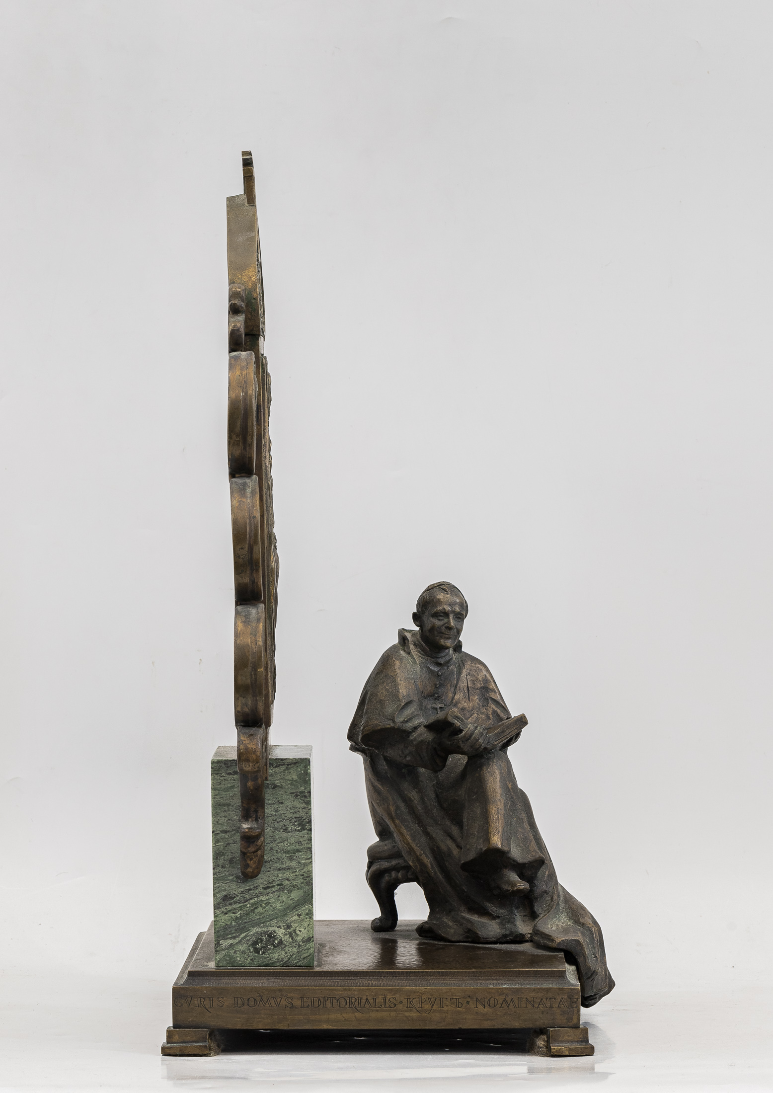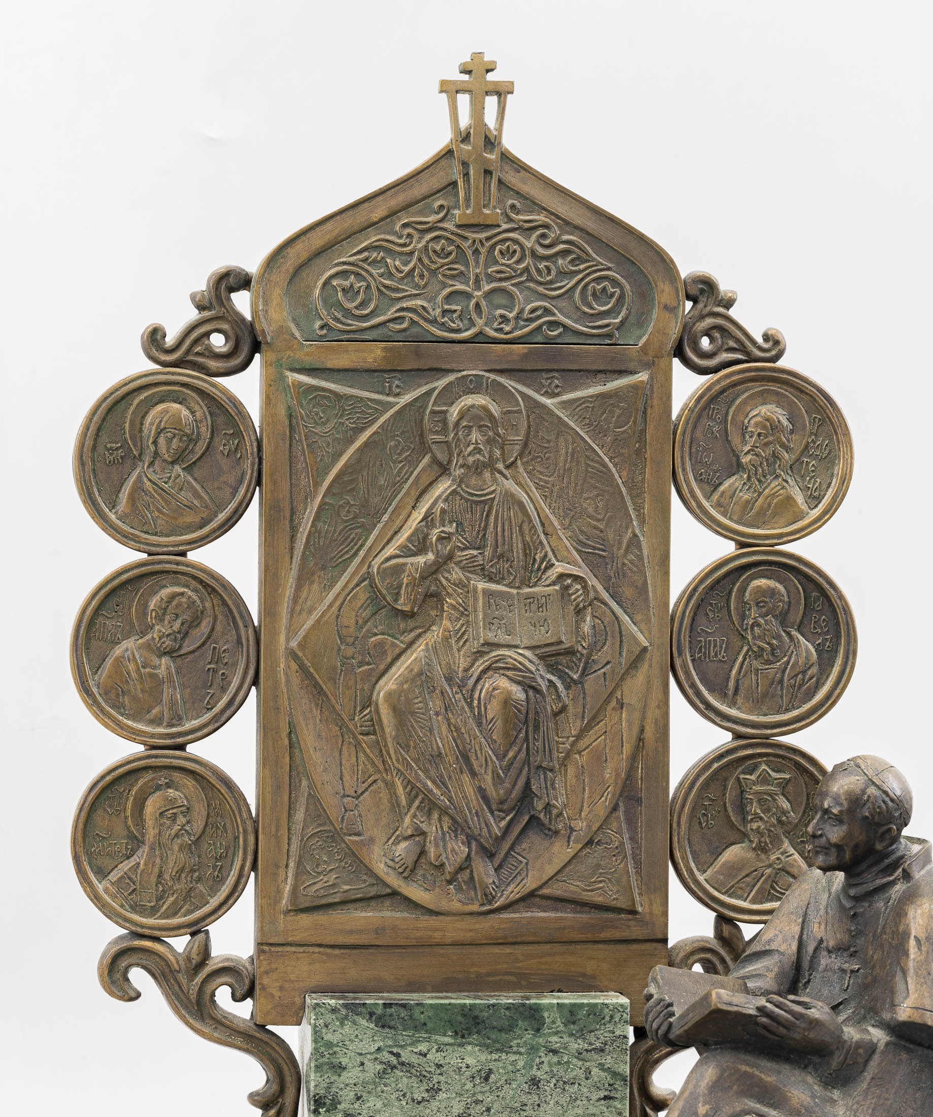 Надписи: на оборотной стороне: «СКУЛЬПТОРЫ. / ГЕННАДИЙ / КУЗНЕЦОВ / ВЛАДИМИР / МОКРОУСОВ / В. / Д.»; на постаменте «CVRIS DOMVS EDITORIALIS · КРУГЪ · NOMINATAE/ A.D. MCMXCI / AD MEMORIAM/ KAROLO WOJTYŁA AVCTORE MOSCOVIAE EDITI»