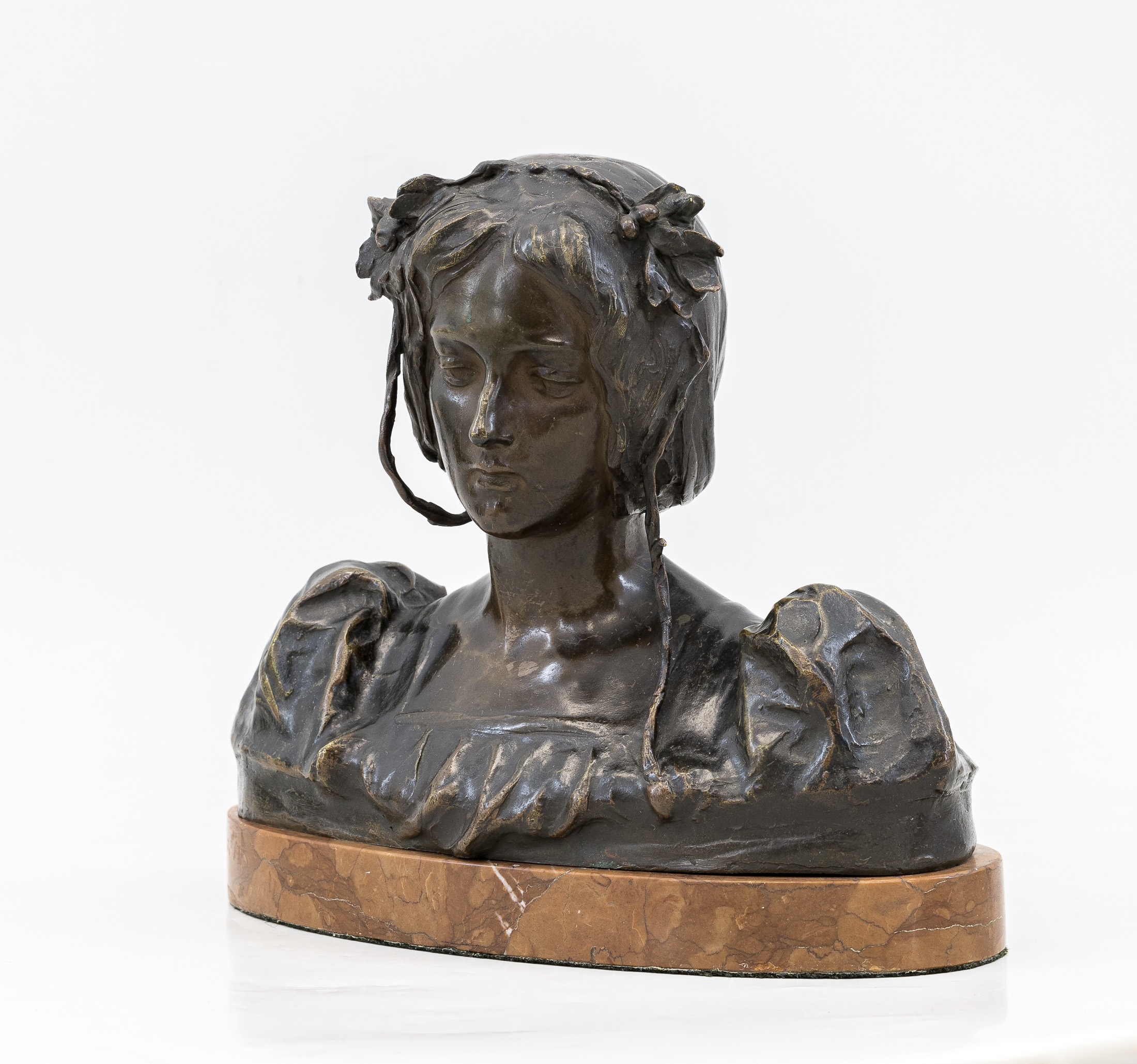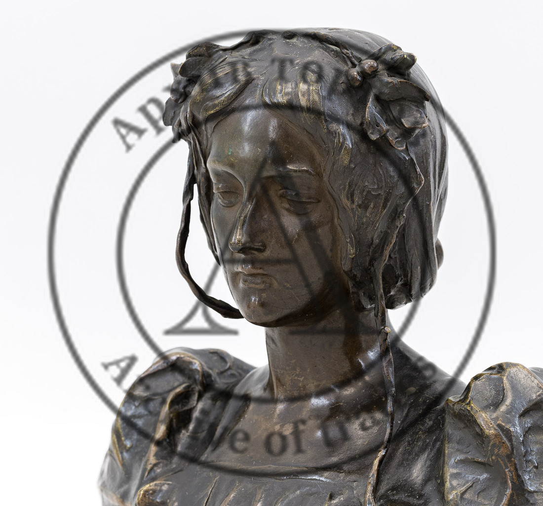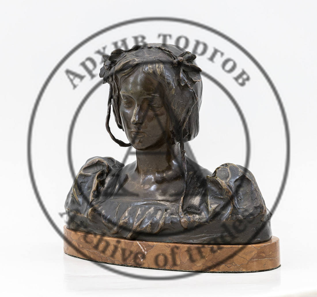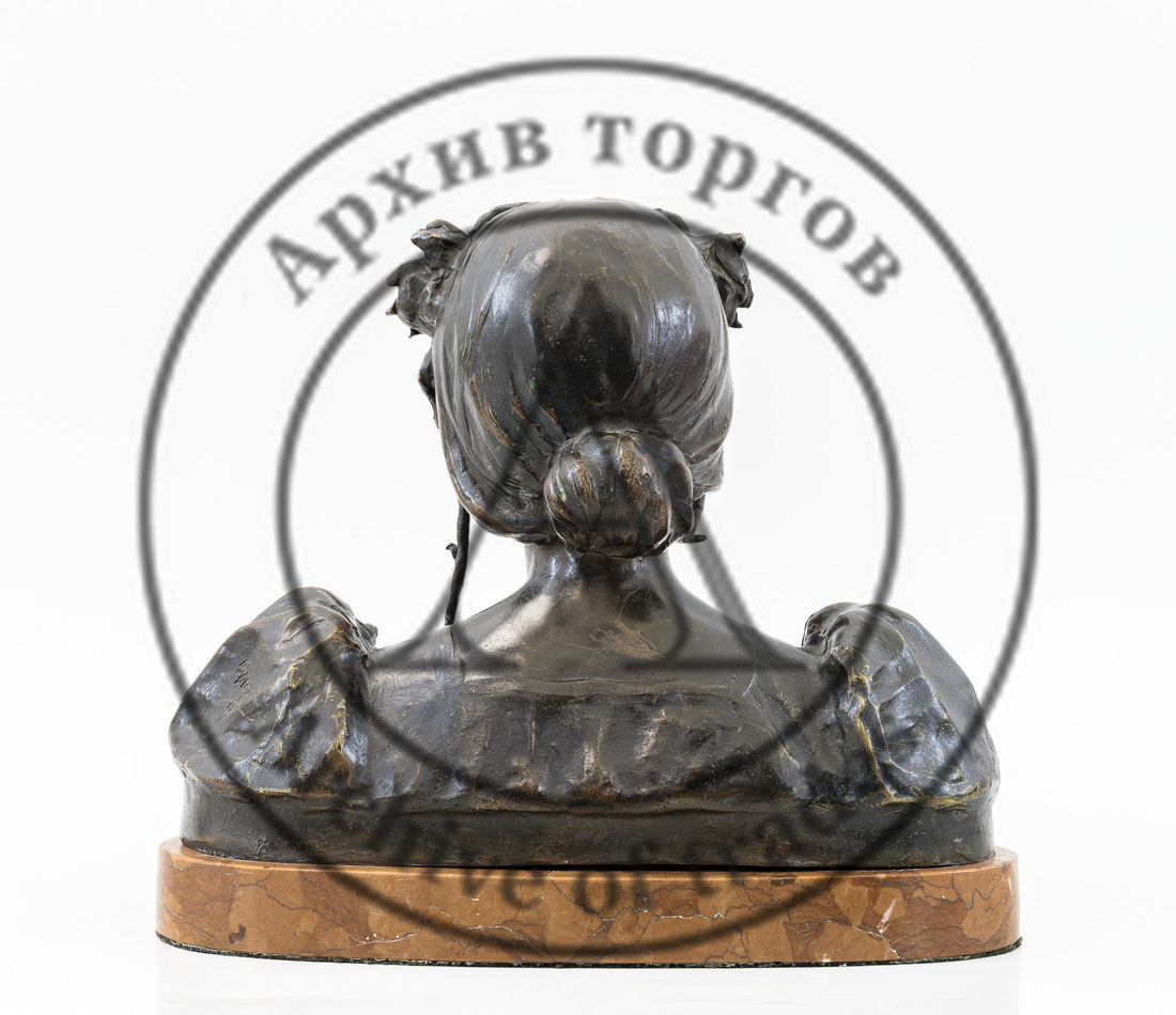 Бронза, литье, патинирование; мраморное основание; бархат.
