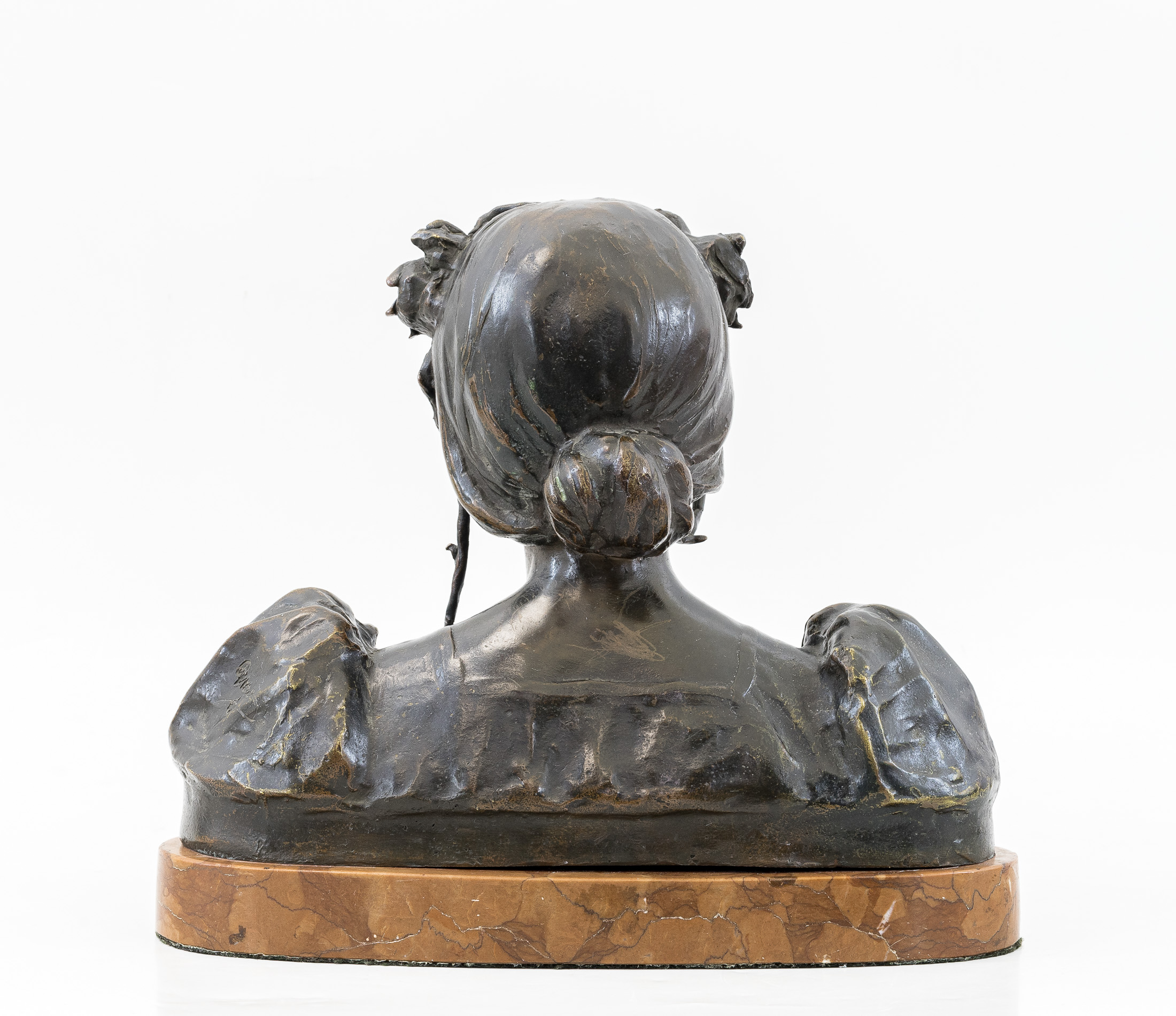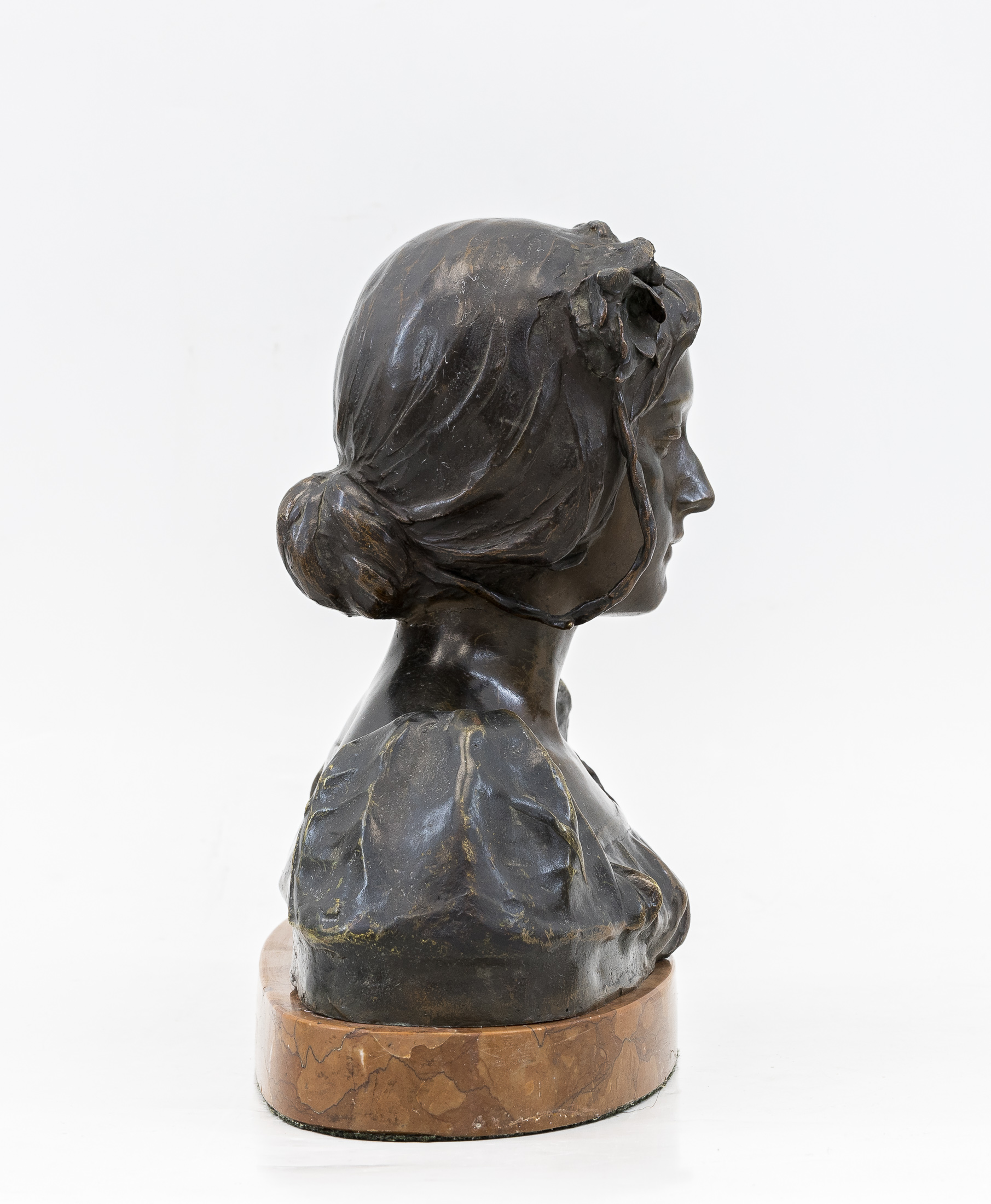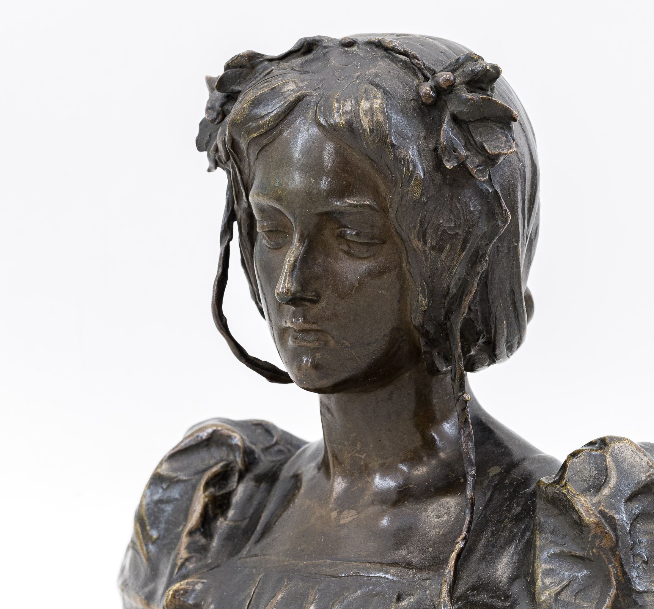 Бронза, литье, патинирование; мраморное основание; бархат.