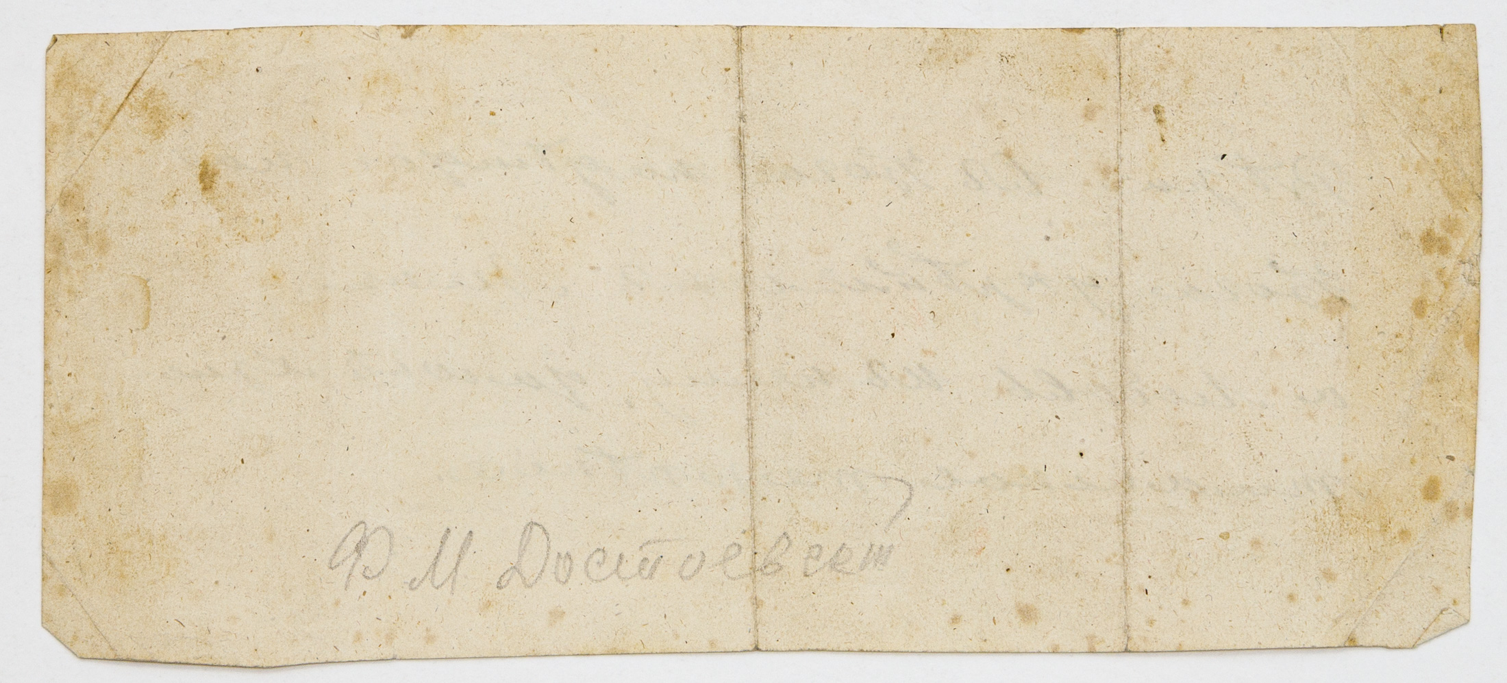 Из коллекции М.И. Чуванова. На обороте записки пометка граф. карандашом рукой М.И. Чуванова «Ф.М. Достоевский».