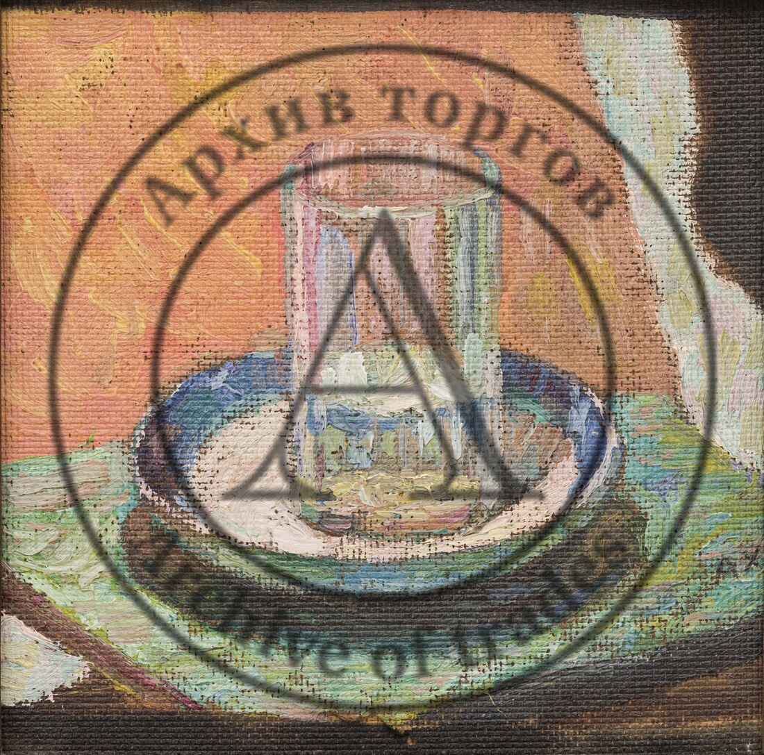 СССР, третья четв. XX в. Оргалит, масло. 20 Х 19 см. Инициалы справа внизу. В раме.