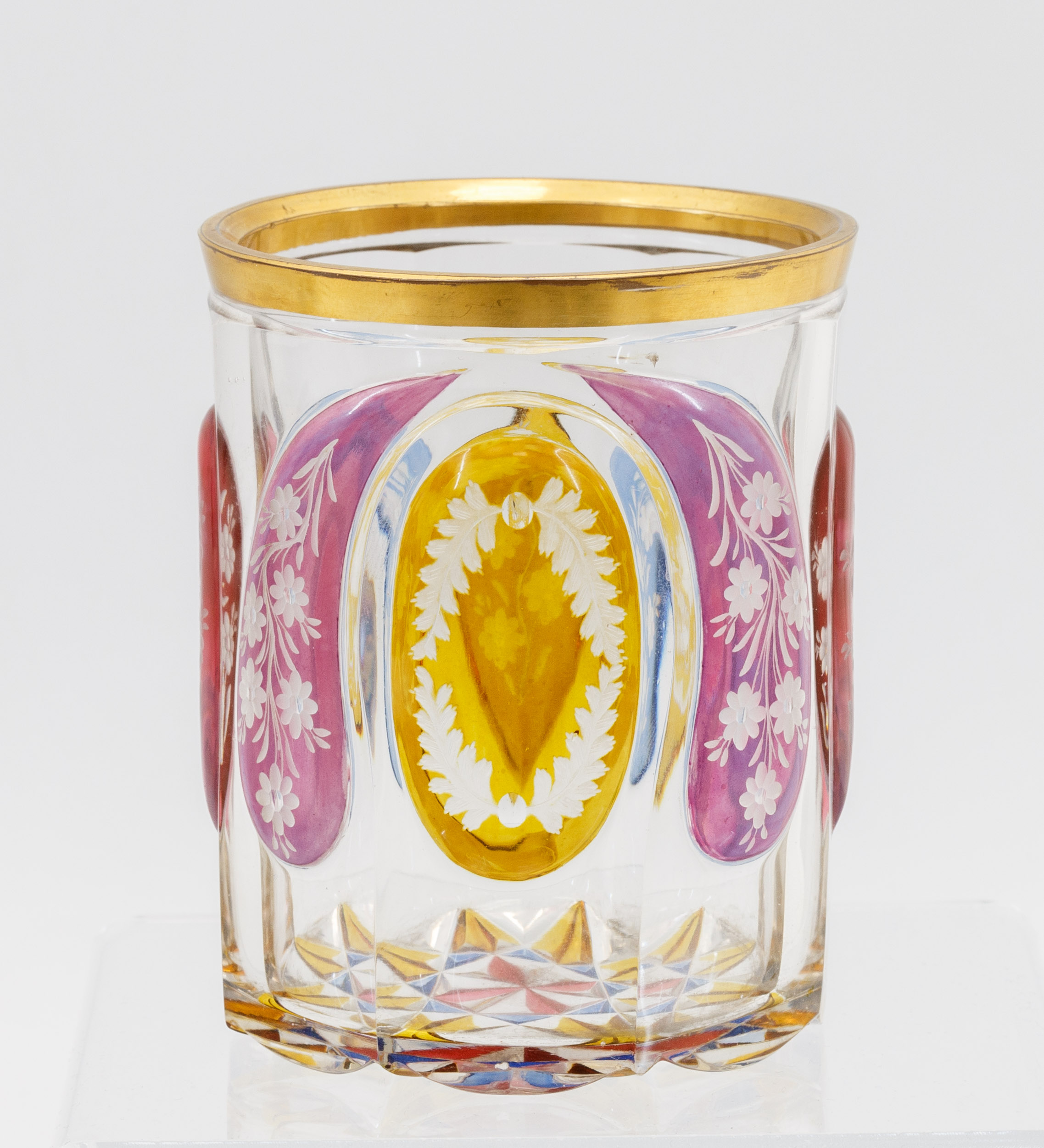Стекло бесцветное; нацвет розовый, сиреневый, жёлтый, голубой; выдувание; гранение; золочение; резьба; гравировка; шлифовка.