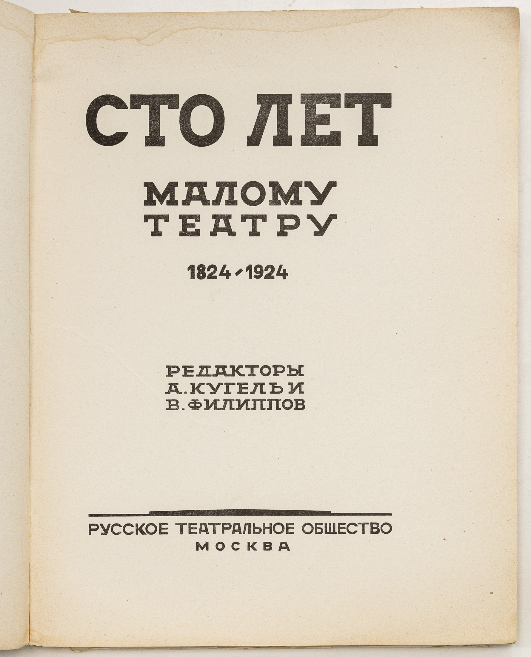 Сто лет Малому театру. 1824-1924 / Ред. А. Кугель и В. Филиппов