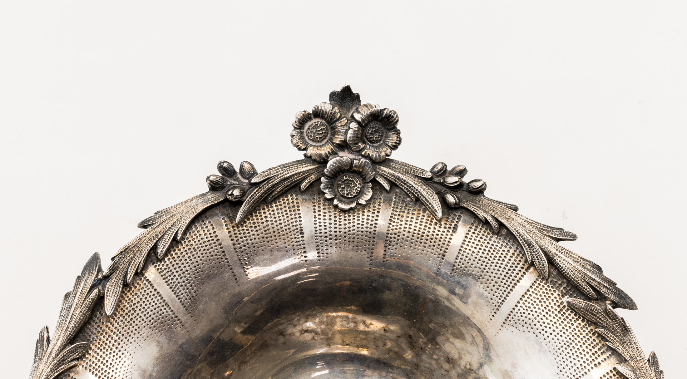 Сохранность хорошая, патина, пайка на ручке серебряным припоем, царапинки, легкая неустойчивость.