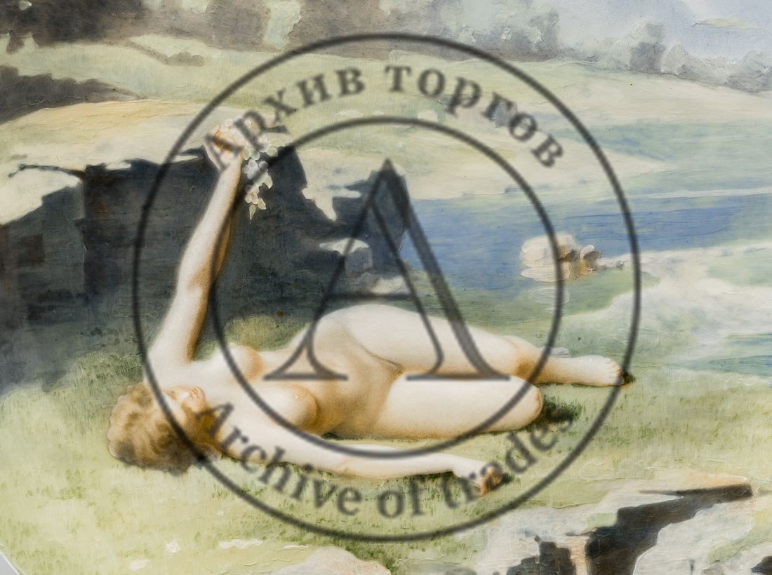 Тарелка с изображением лежащей обнаженной девушки
