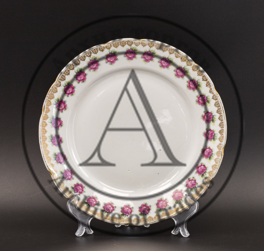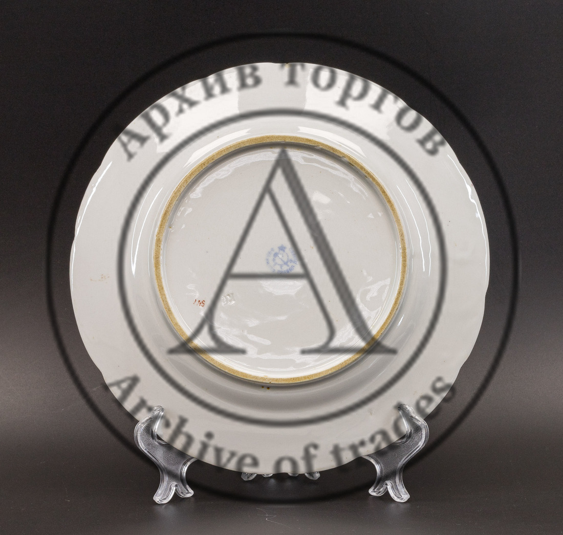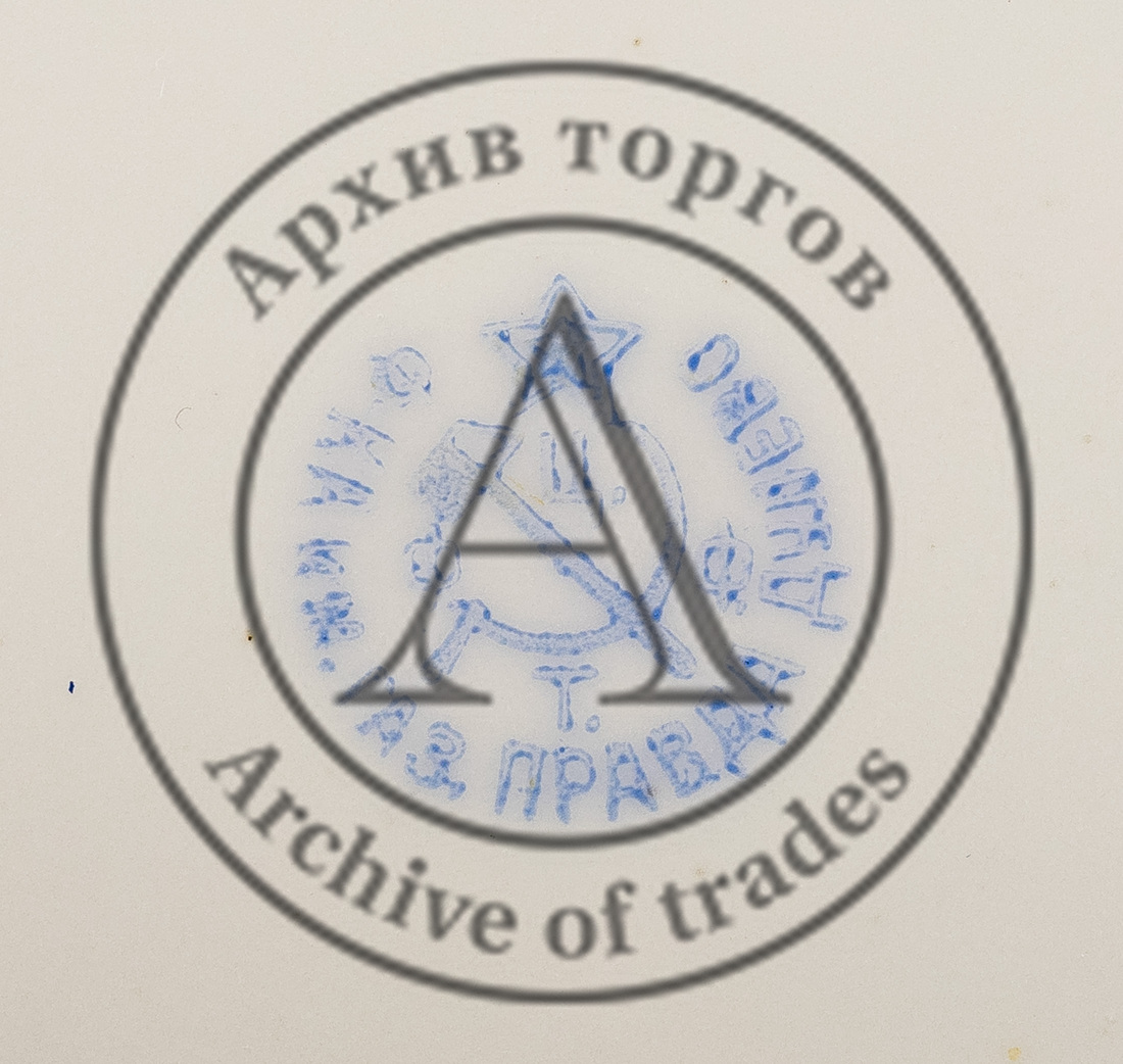 Марка: 1) «ФЦФТ Ф-КА им. ГАЗ. ПРАВДА ДУЛЕВО» (синяя надглазурная печать), 2) «КС» (на одной тарелке) в тесте; 3-4) «541», «606» (на двух других тарелках) красным.