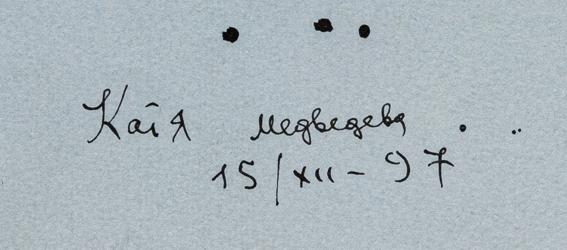 Медведева Катя - художница, примитивист. Родилась 10 января 1937 г. в с. Голубино Новооскольского района Белгородской области в крестьянской семье. После смерти родителей, с 1947 по 1954 гг. воспитывалась в детском доме №2, в г. Шуша Нагорно-Карабахской автономной области Азербайджанской ССР. Закончила фабрично- заводское училище города Баку, и одиннадцать лет (с 1954 г.) проработала на ткацкой фабрике. Долгие годы вела «кочевую» жизнь, переезжая с места на место. Катя не училась специально живописи. Впервые она попробовала рисовать гуашью в 1976 году, в возрасте 39 лет, и создала свой первый рисунок «Хлеб насущный». 10 апреля того же года открылась ее первая персональная выставка в Клубе работников торговли в Кисловодске, где было представлено 37 рисунков. С того времени прошло множество персональных выставок в России и за рубежом. Дважды работы Кати Медведевой выставлялись в Ницце, выставку устраивал профессор-славист, известный коллекционер русского искусства Ренэ Герра, и картина «Белые ночи Старой Ладоги» вызвала живой интерес. На эту работу обратил внимание Марк Шагал, который, по просьбе коллекционера, купившего картину, написал на холсте, под фамилией художницы: «Катя Медведева — это чисто русский талант. Она так же любит цвет, как и я»". С 1999 г. К.Медведева постоянно живет и работает в Рязанской области сначала в деревне Анемнясево, а с 2005 г. в с. Перво, Касимовского района.