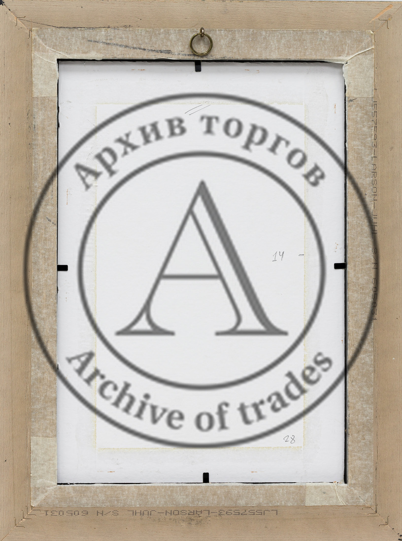В раме, паспарту, под стеклом.