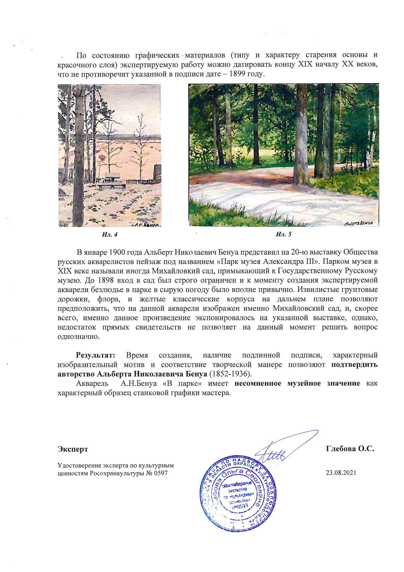 Акварель имеет несомненное музейное значение как характерный образец станковой графики Альберта Бенуа