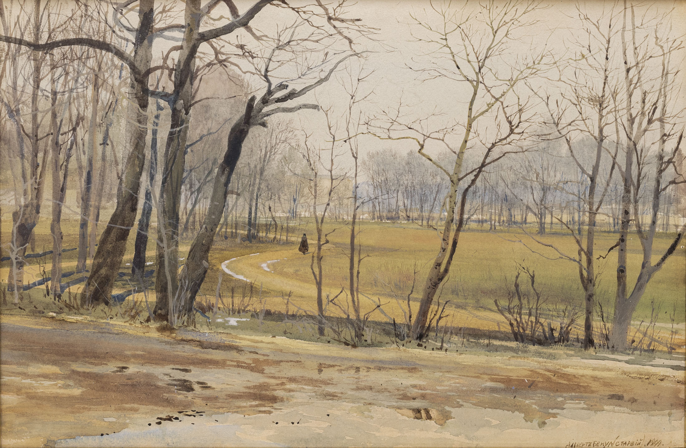 1899 год. Бумага на картоне, акварель, белила. 33,7 Х 49,8 см. Подпbcь и дата справа внизу. В раме, под стеклом.