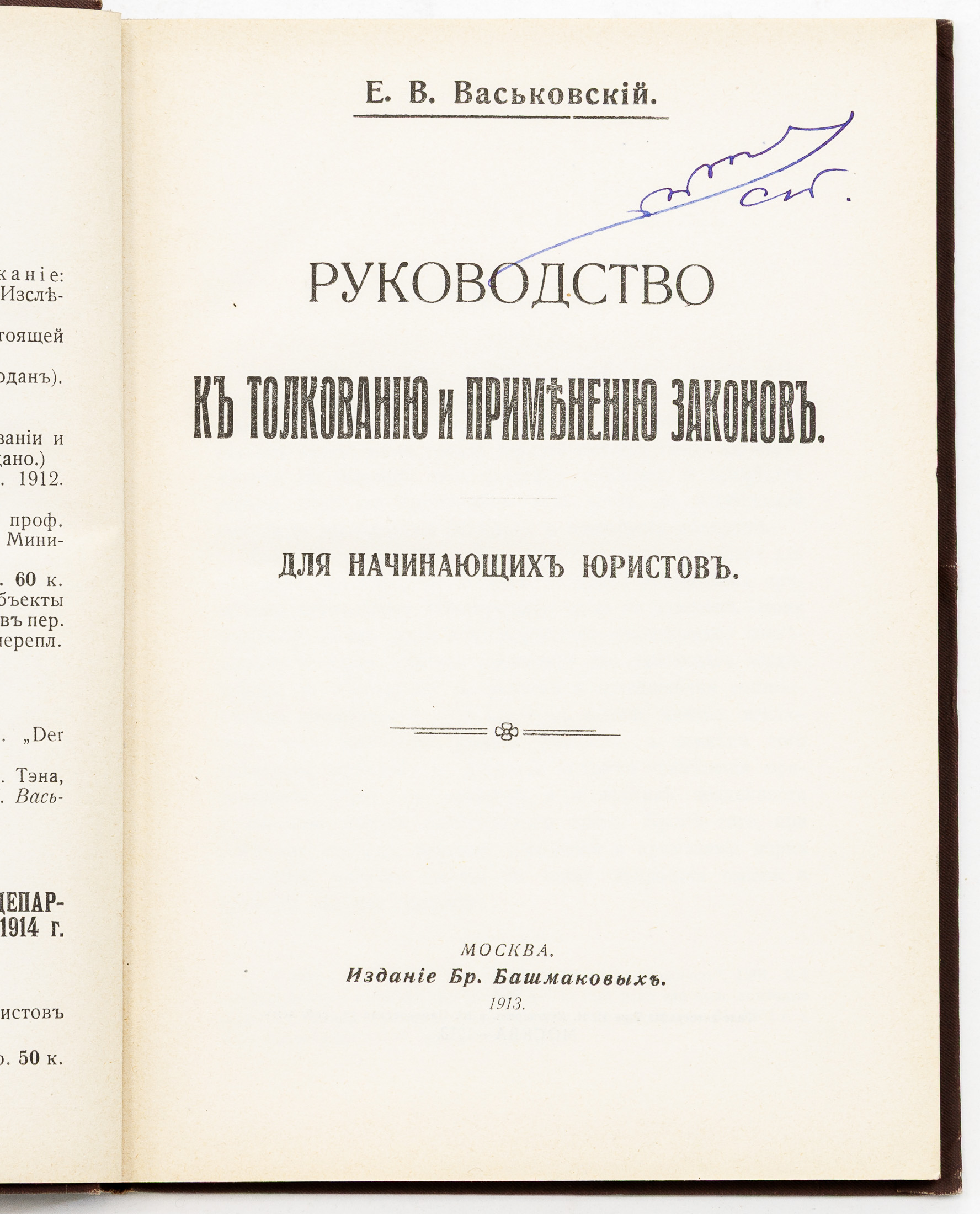 Васьковский Е.В. Руководство к толкованию и применению законов: Для начинающих юристов