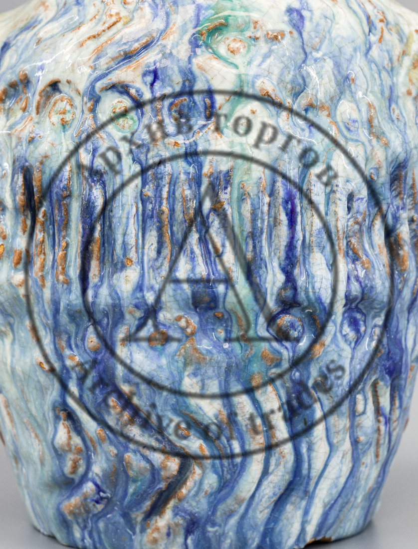 Майолика, цветные потечные глазури трёх оттенков (бело-голубой, синий, бирюзовый)