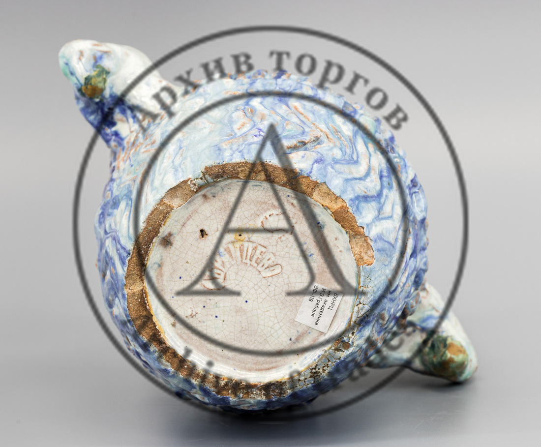 Марка: на донышке в тесте полукругом «Абрамцево»; соответствует маркам на эталонных предметах, созданных Абрамцевской гончарной мастерской в 1890-х гг.