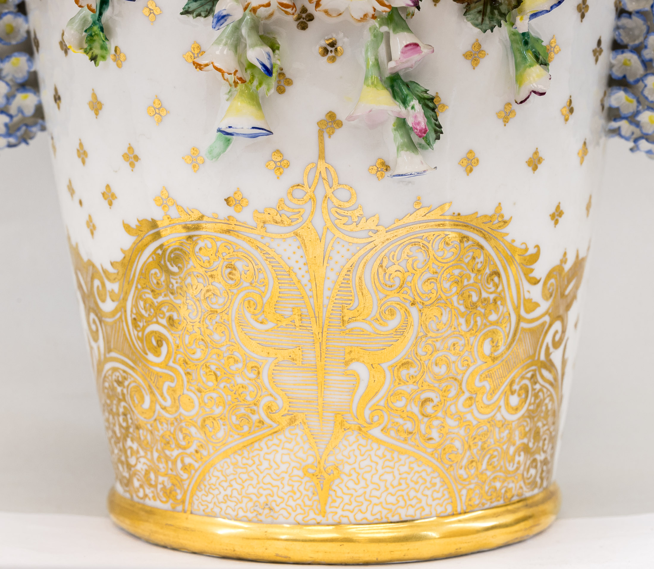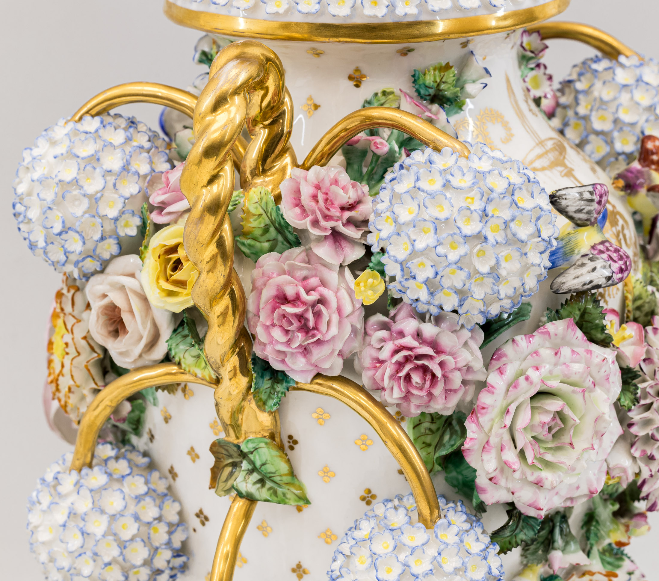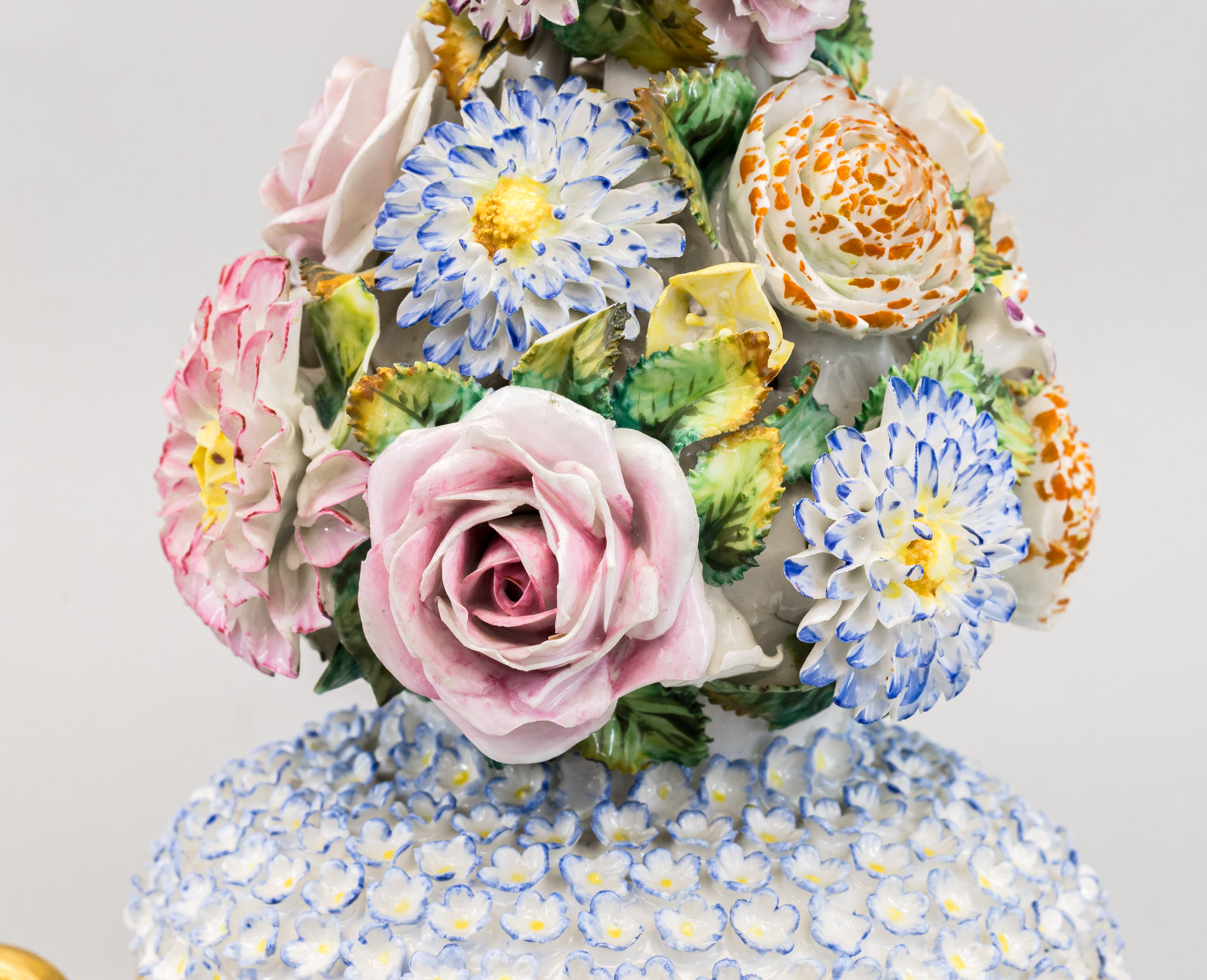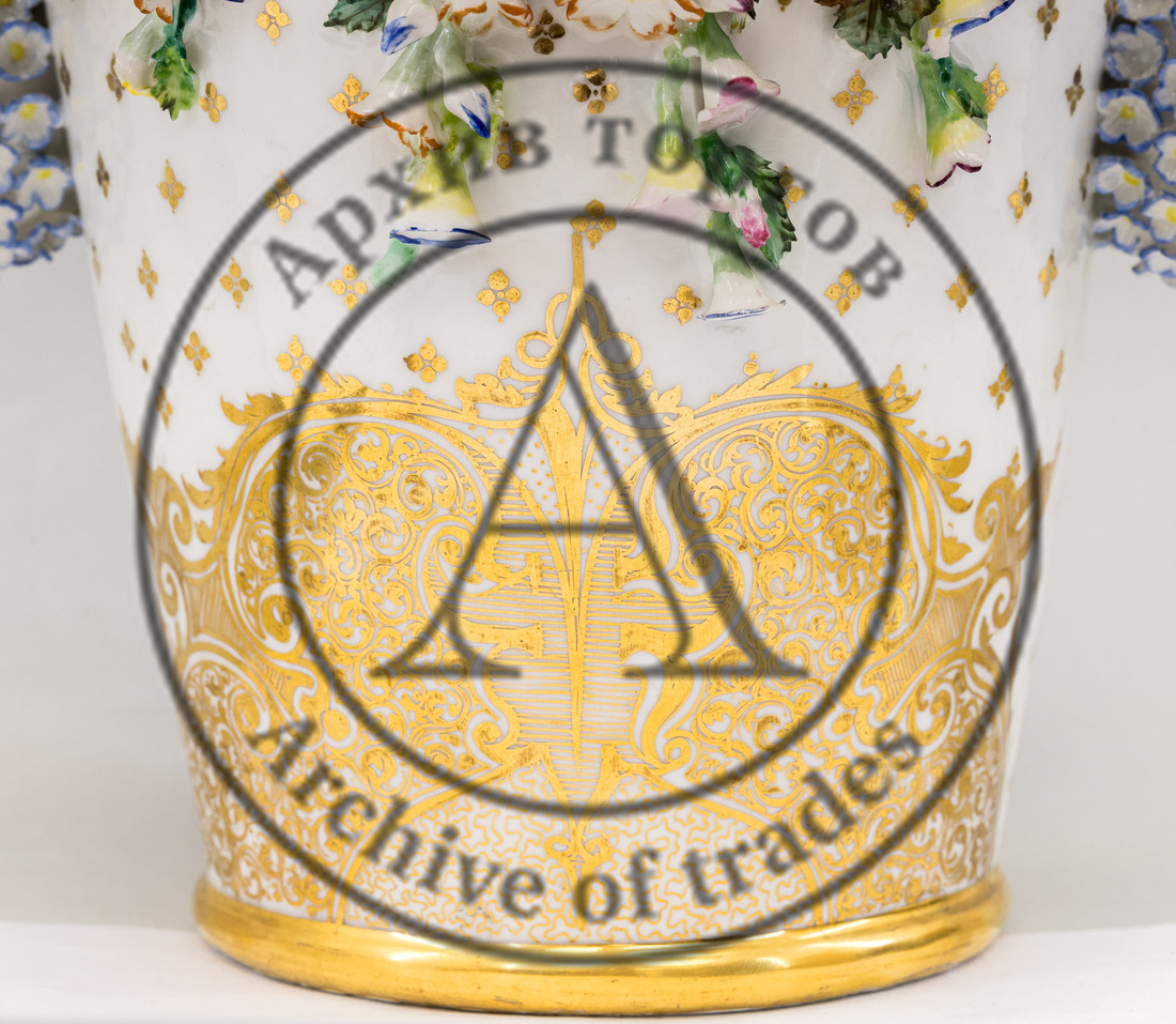 Сохранность: незначительные потертости золочения, скольчики на цветах и листьях, склейка ручки в двух местах.