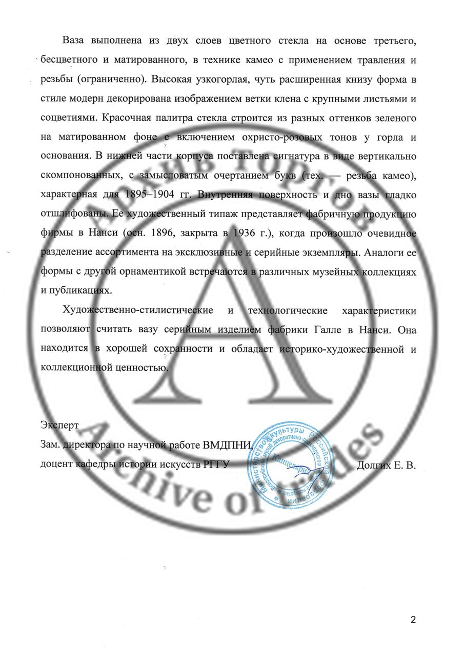 Экспертное заключение Е.В. Долгих, Всероссийский музей декоративно-прикладного и народного искусства, № 01-196 от 04.06.02.
