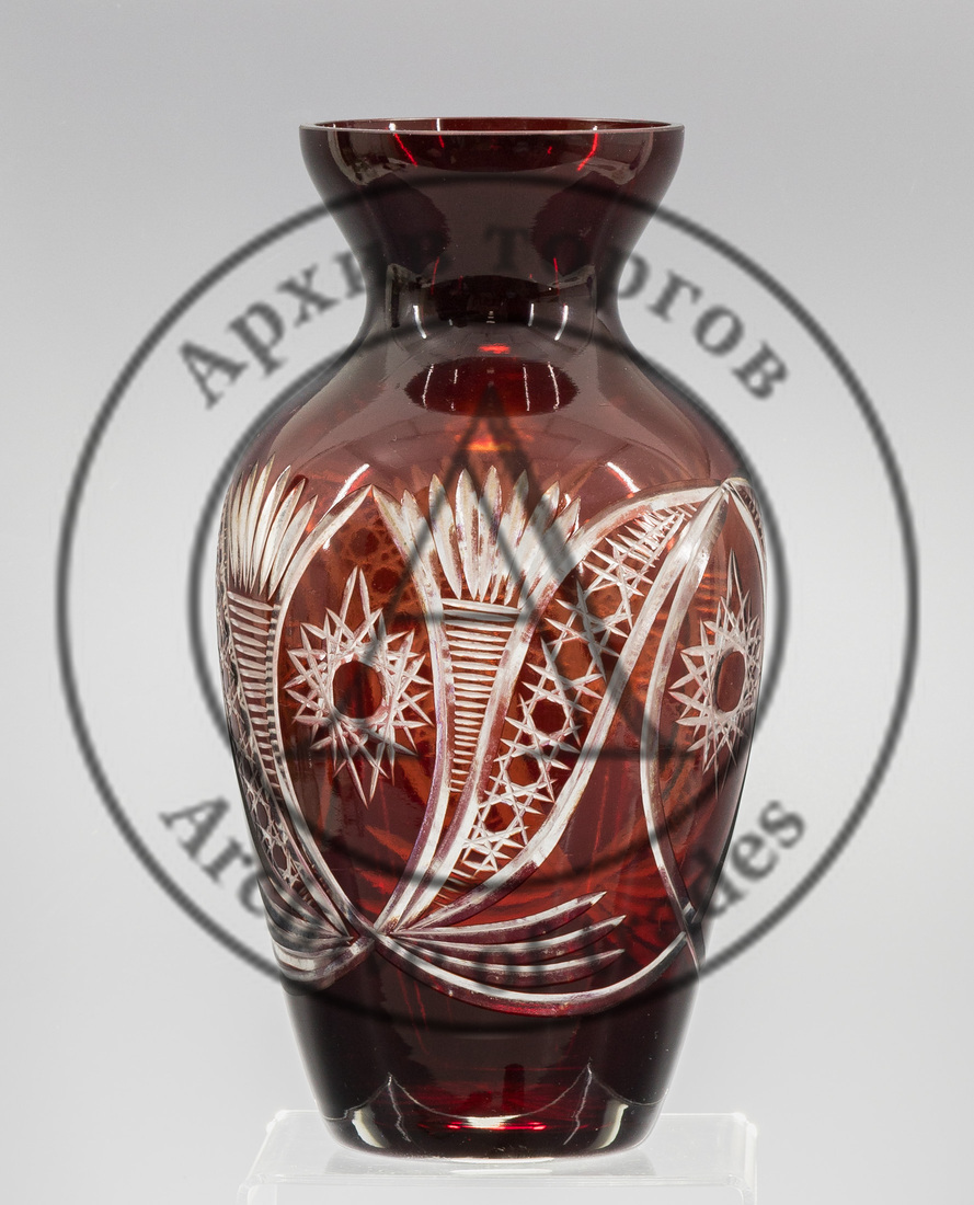 Ваза с рубиновым нацветом и геометрическим декором