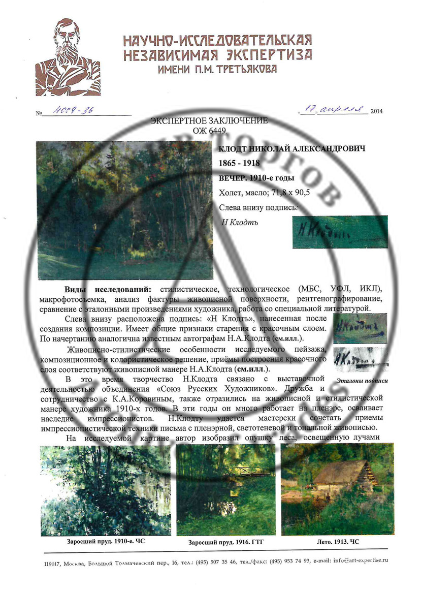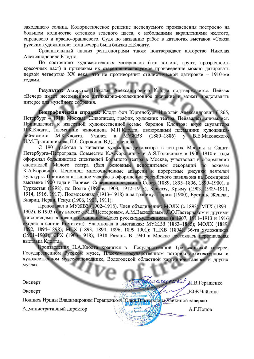 Экспертное заключение НИНЭ им. Третьякова (эксперты Геращенко И., Чайкина Ю., 2014 год)