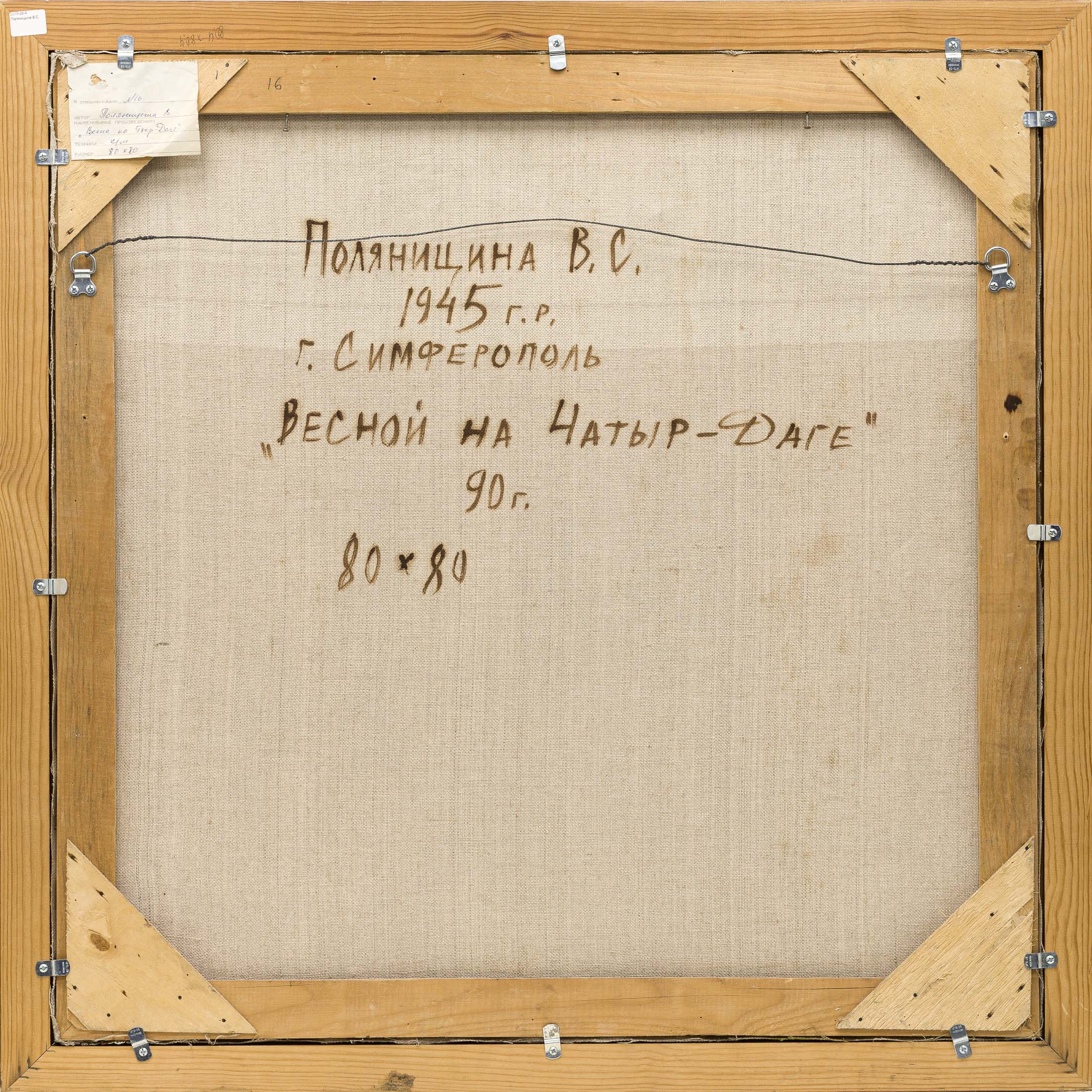 Поляницына Валентина Сергеевна (1945–1999) - художница. В 1974 году окончила Ленинградское художественно-промышленное училище им. В. И. Мухиной. С 1979 года участвовала в групповых выставках в Москве, Испании, Японии, Италии и Германии. Имела персональные выставки в Крыму и Москве. Cамобытная художница, монументалист по образованию и призванию, автор медитативных композиций - пейзажей, портретов, натюрмортов, превращающихся в цветной мир экспрессивных линий и выразительных силуэтов. Работы находятся в музеях Симферополя и Севастополя, частных коллекциях Испании, Италии, Японии, США, Германии, России и Украины.