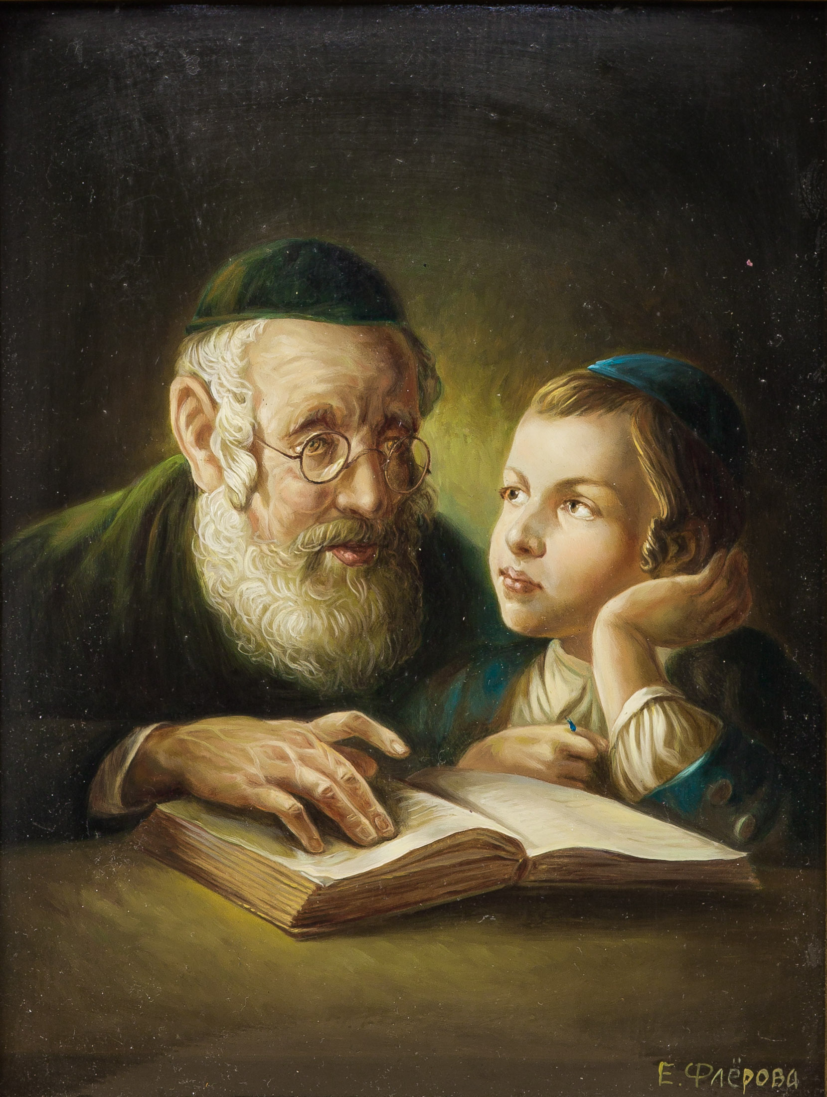 Флёрова Елена Николаевна (1943 - 2020) — российская художница, член Союза художников СССР с 1977, Почётный член Российской Академии Художеств с 2007. Родилась в Москве 19 декабря 1943 года в семье художника-дизайнера и театрального режиссёра-педагога. В 1963 году окончила художественную школу при Московском институте им. В. И. Сурикова, в 1969 году Московский государственный художественный институт им. В. И. Сурикова. В 1974 году окончила аспирантуру Академии художеств СССР по классу академика АХ СССР, профессора Е. А. Кибрика. Награждена серебряной медалью Академии Художеств СССР, серебряной медалью ВДНХ, лауреат премий журналов «Работница», «Смена», «Крестьянка» в 1980-х годах. С 1991 по 2005 год работала в Еврейской художественной галерее в Нью-Йорке. По возвращении в Москву в 2005 году вела общественную работу. В мае 2006 года открылась постоянная галерея «Тора и история» в Марьинорощинском Еврейском Общинном Центре, в 2007 году в Российской государственной библиотеке — постоянная галерея картин «Единая Россия, вера и любовь».
