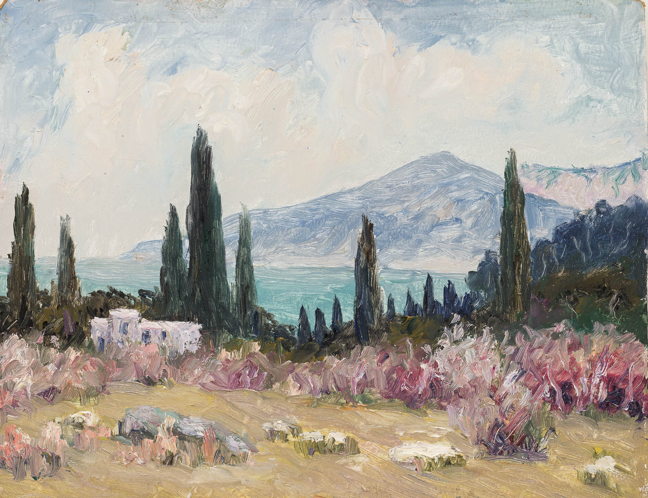СССР, 1955 г. Картон, масло. 24 Х 25 см. Подпись с оборота.
