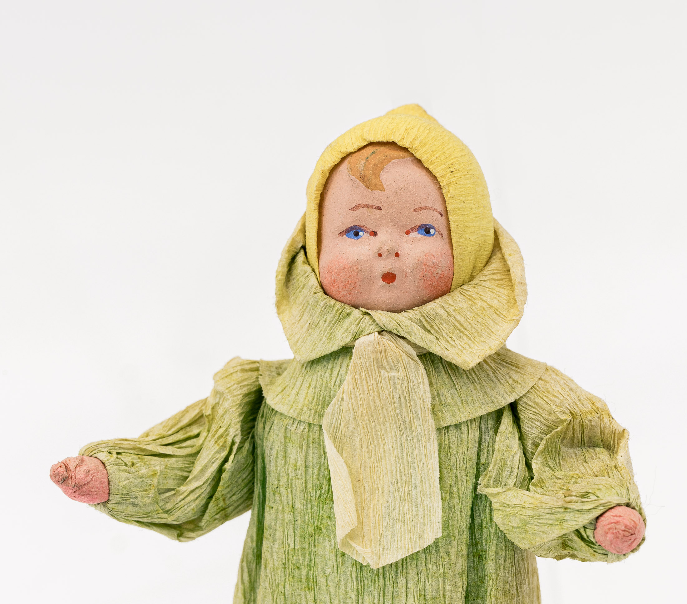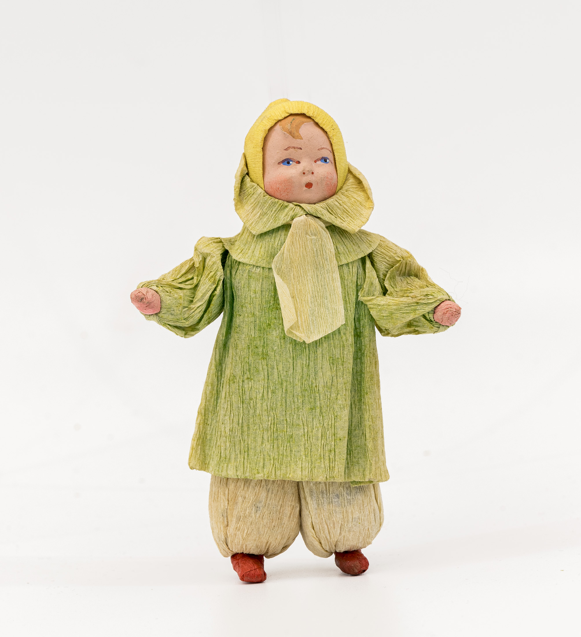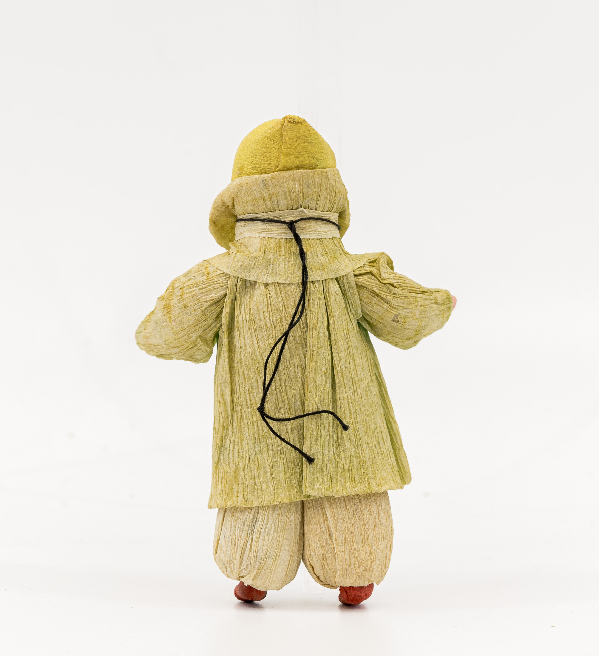 СССР, 1-я пол. XX в. Вата, бумага, роспись. Высота: 11 см. Ширина: 7 см. Сохранность: незначительные следы бытования, утрата красок на куртке с задней стороны.