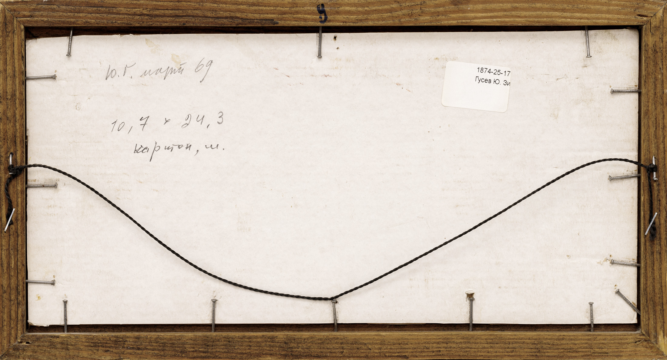 СССР, 1969 год. Картон, масло. 11 Х 24 см. Подпись и дата на обороте. В раме. Происходит из семьи художника