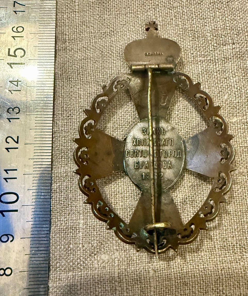 Утрата эмали. Знак II степени (серебро). Вес 32,2 гр. Справочно: (группа ВК "Журнал "Петербургский коллекционер", автор Олег  Сыромятников), 29 января 1883 года был утвержден знак Холмского Свято Богородского Братства.