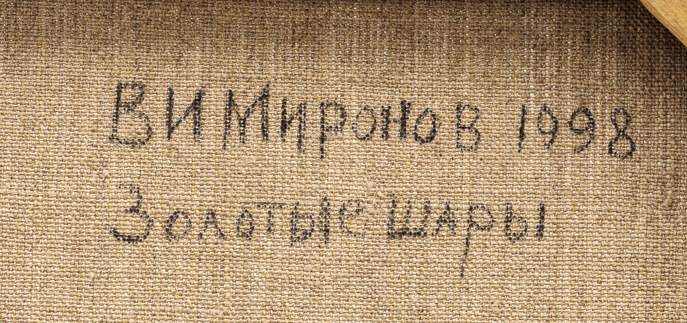 Миронов Виктор Иванович (1933 г.р.) - Живописец, монументалист. Во второй половине 1940-х учился в Палехском училище живописи, а затем поступил во ВГИК. После окончания учебы работал на студии диафильмов. В это же время В. Миронов занимался в студии Э. Белютина. В сентябре 1961 участвовал в выставке произведений Горкома художников книги, графики и плаката в ЦДРИ, в которой принимала участие студия Белютина. Участник выставок студии Белютина в Абрамцеве в 1960-х. Летом 1962 вместе с Белютиным и другими его учениками совершил поездку по Волге на теплоходе. Участвовал в выставке произведений художников студии Белютина («Таганка»), открывшейся 26 ноября 1962 в доме 9 на Большой Коммунистической улице; помимо белютинцев там экспонировались Э. Неизвестный, Ю. Нолев-Соболев, Ю. Соостер, В. Янкилевский. В составе белютинской группы выставлялся на скандально знаменитой выставке «30 лет МОСХА» в Манеже, где была повторена экспозиция «Таганки». После этих выставок художник покинул студию Белютина и почти не выставлялся, но много работал, писал пейзажи, портреты, натюрморты. А чуть позже целиком ушел в иконопись, расписал около двадцати храмов в Новгороде, Пензе, Саранске, Тобольске, в Почаевском монастыре на Украине, Морскую церковь в Баку, Кафедральный православный собор в честь Рождества Христова в Риге и др.